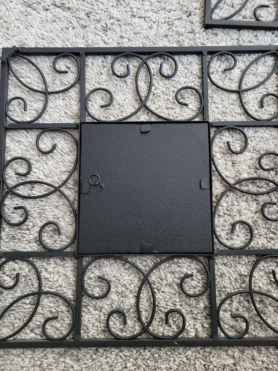 Set of 3 Black Metal Scrollwork Square Wall Mirrors