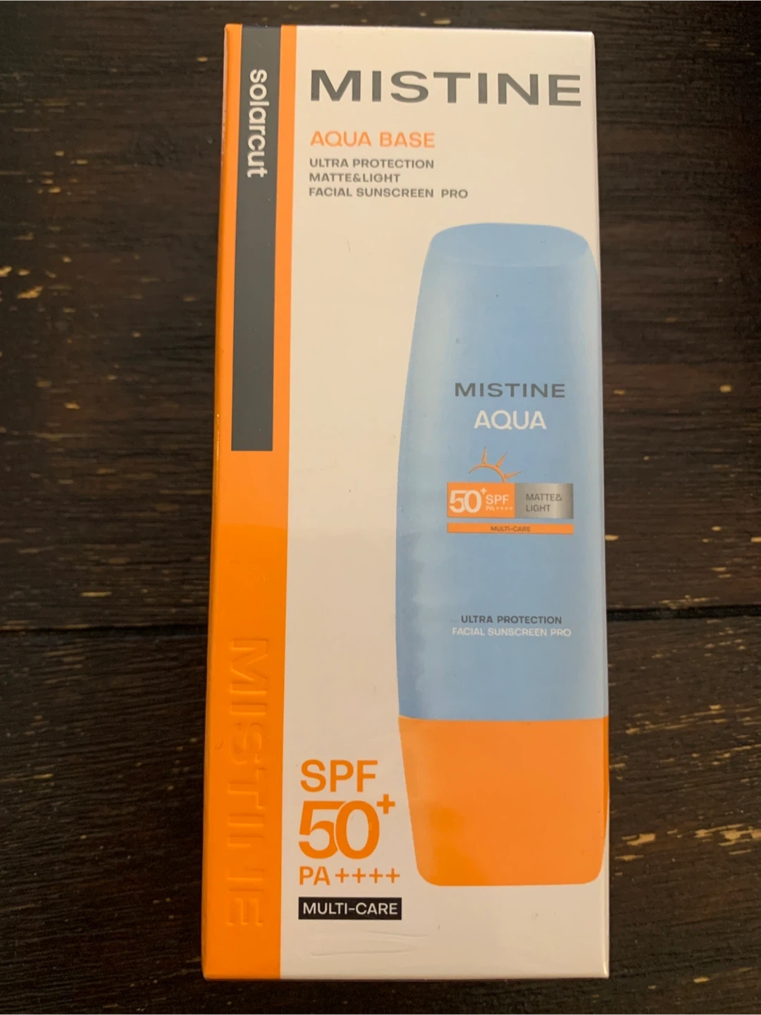 Mistine Aqua Base Facial Sunscreen Pro with SPF 50+ and PA++++. This matte & light formula offers ultra protection. It's a multi-care sunscreen for your face.
