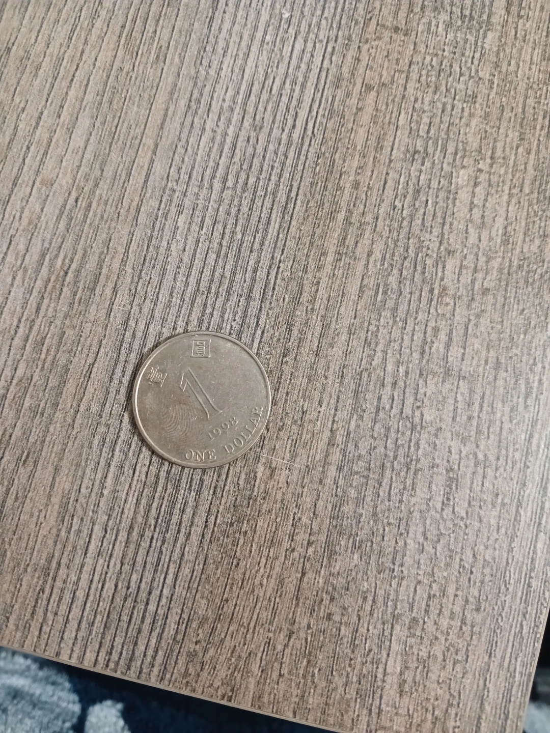 A Hong Kong one dollar coin from 1992. Features a floral design on one side and the denomination on the other. Made of metal.