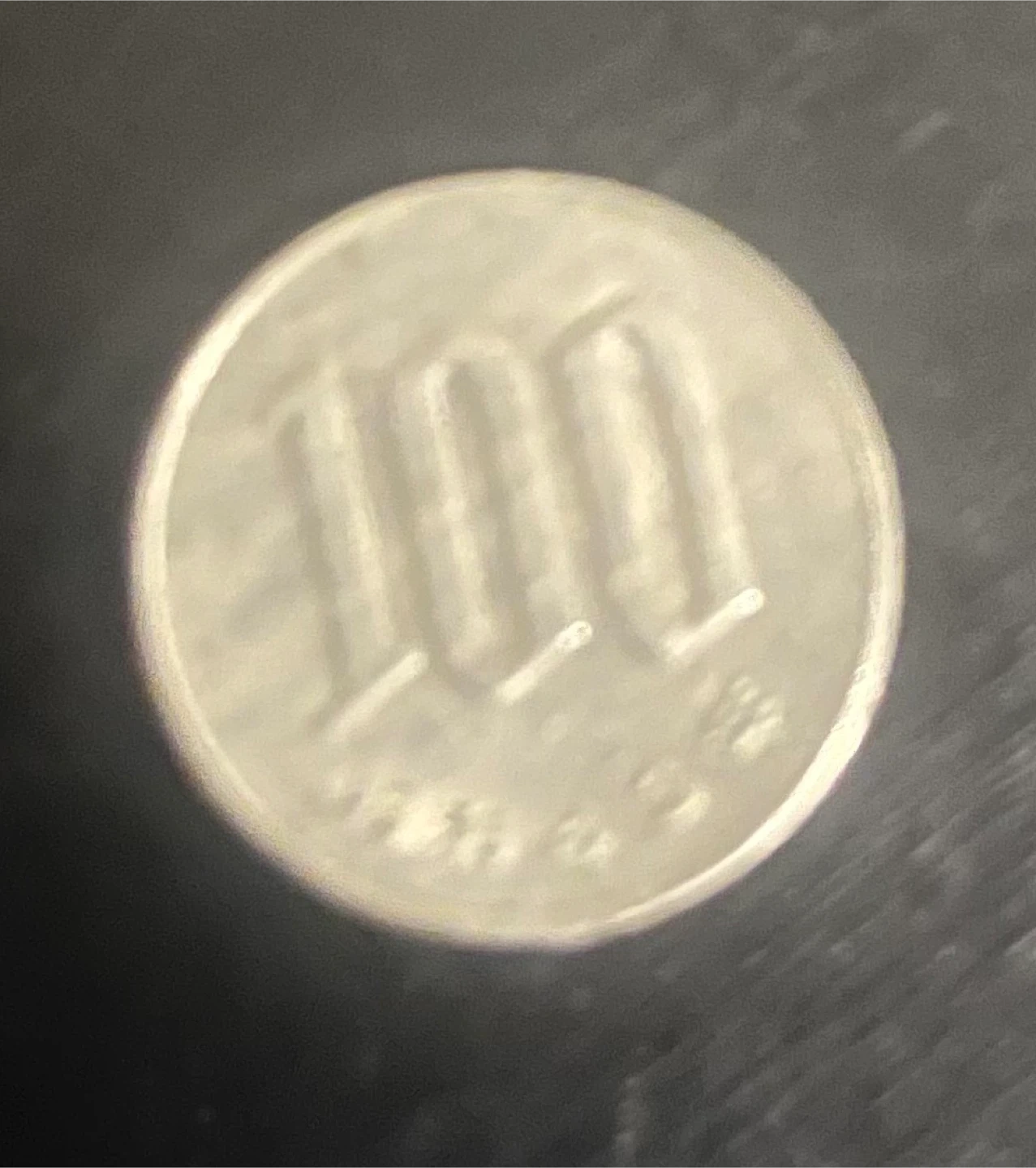 This is a 100 yen coin from Japan. It features a floral design on one side and the numeral "100" on the other. The coin is made of a silver-coloured metal.