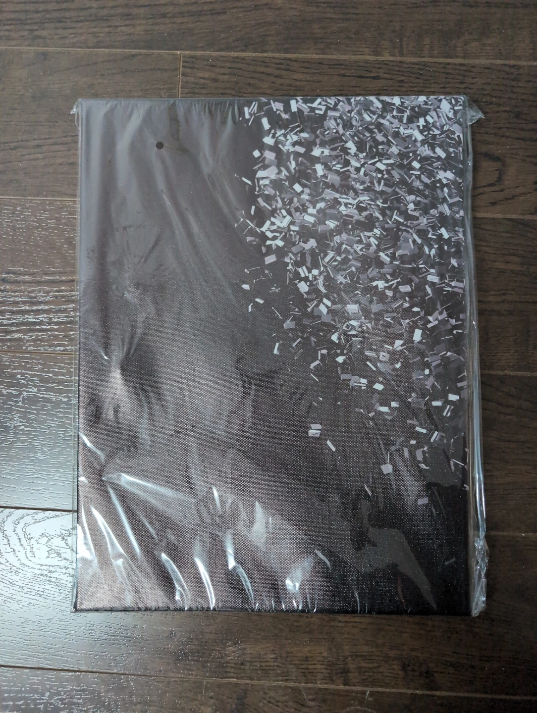 This canvas wall art features a modern black and white confetti design. It's wrapped in plastic, keeping it in pristine condition. A great piece to add some flair to your space!