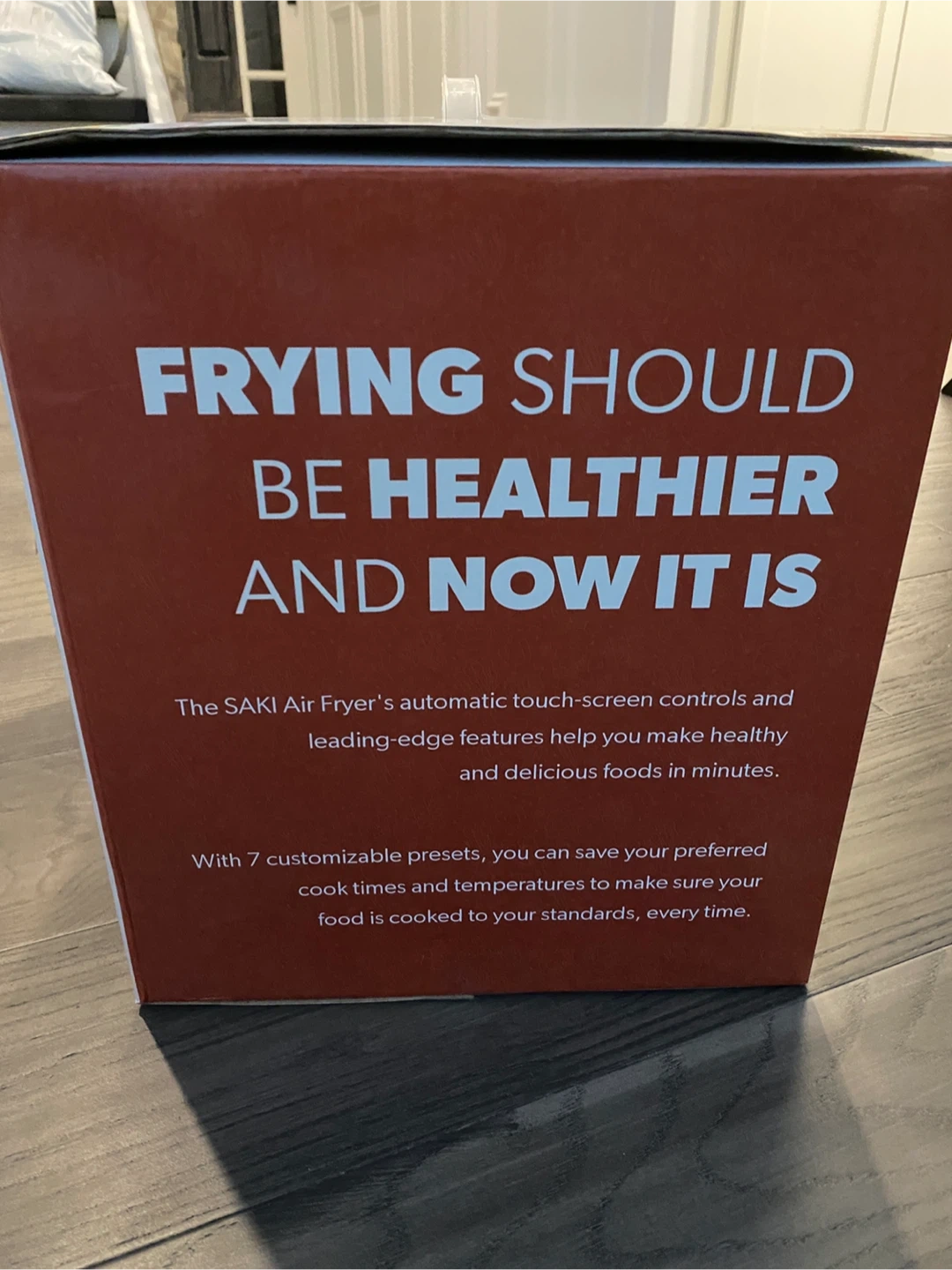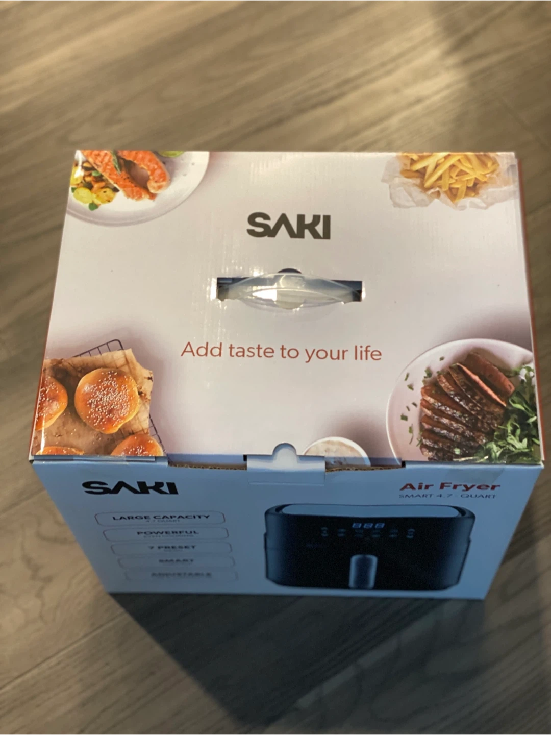 BNIB - This Saki Air Fryer Oven has a large 4.7-quart capacity. It offers 7 customizable presets for easy cooking. The air fryer uses little-to-no oil, producing food with 85% less fat.