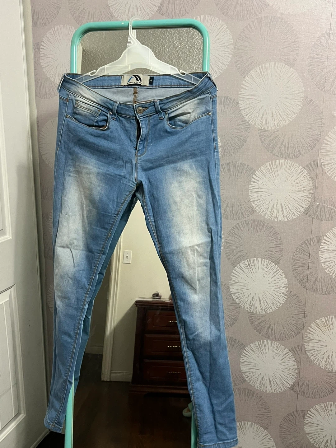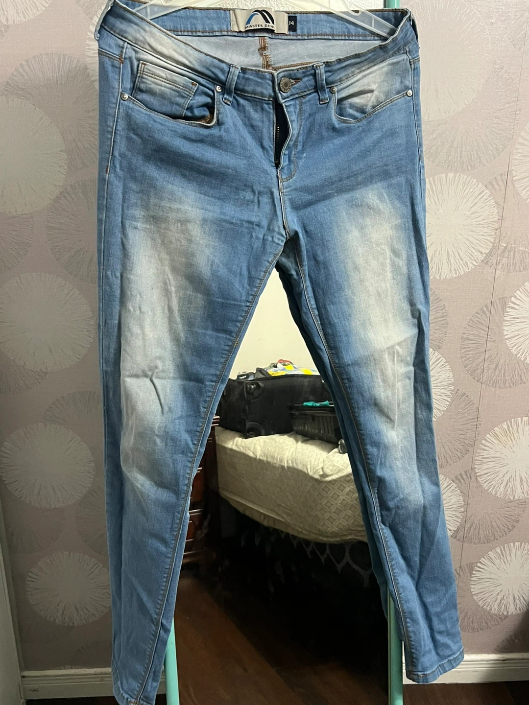 These are light wash denim jeans by Master Denim. They're a size 34 waist. Comfortable for everyday wear!