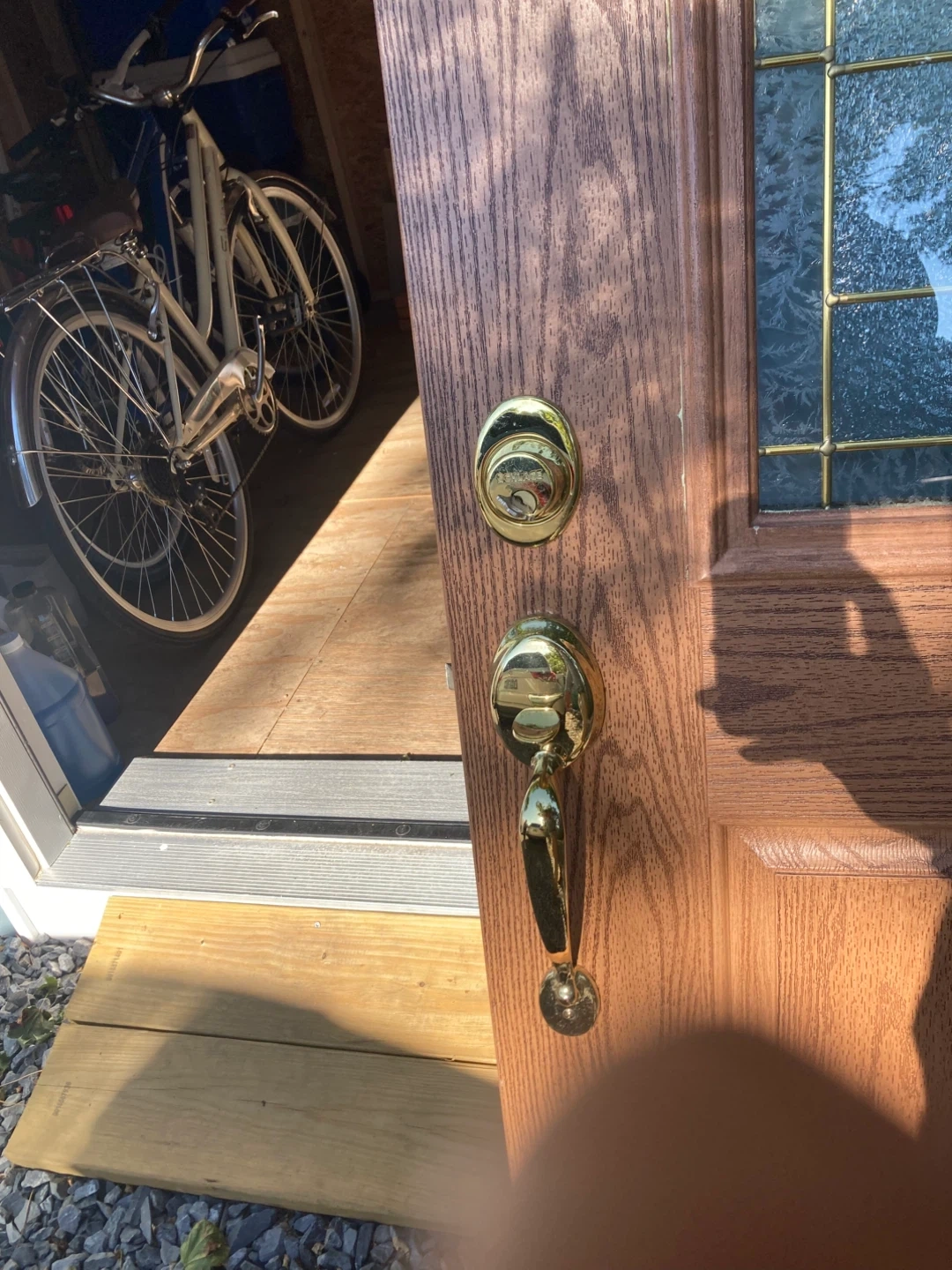 Wooden Exterior Door with Arched Glass Insert