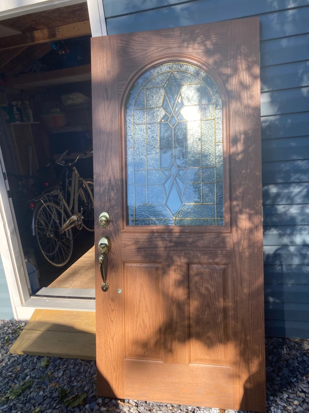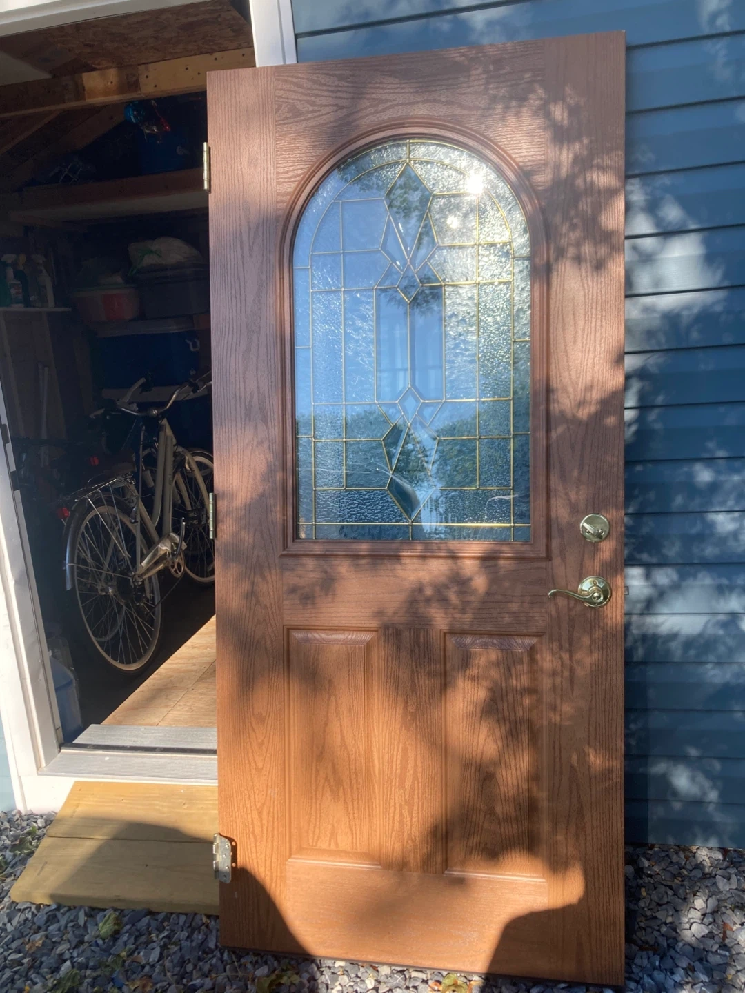 Wooden Exterior Door with Arched Glass Insert