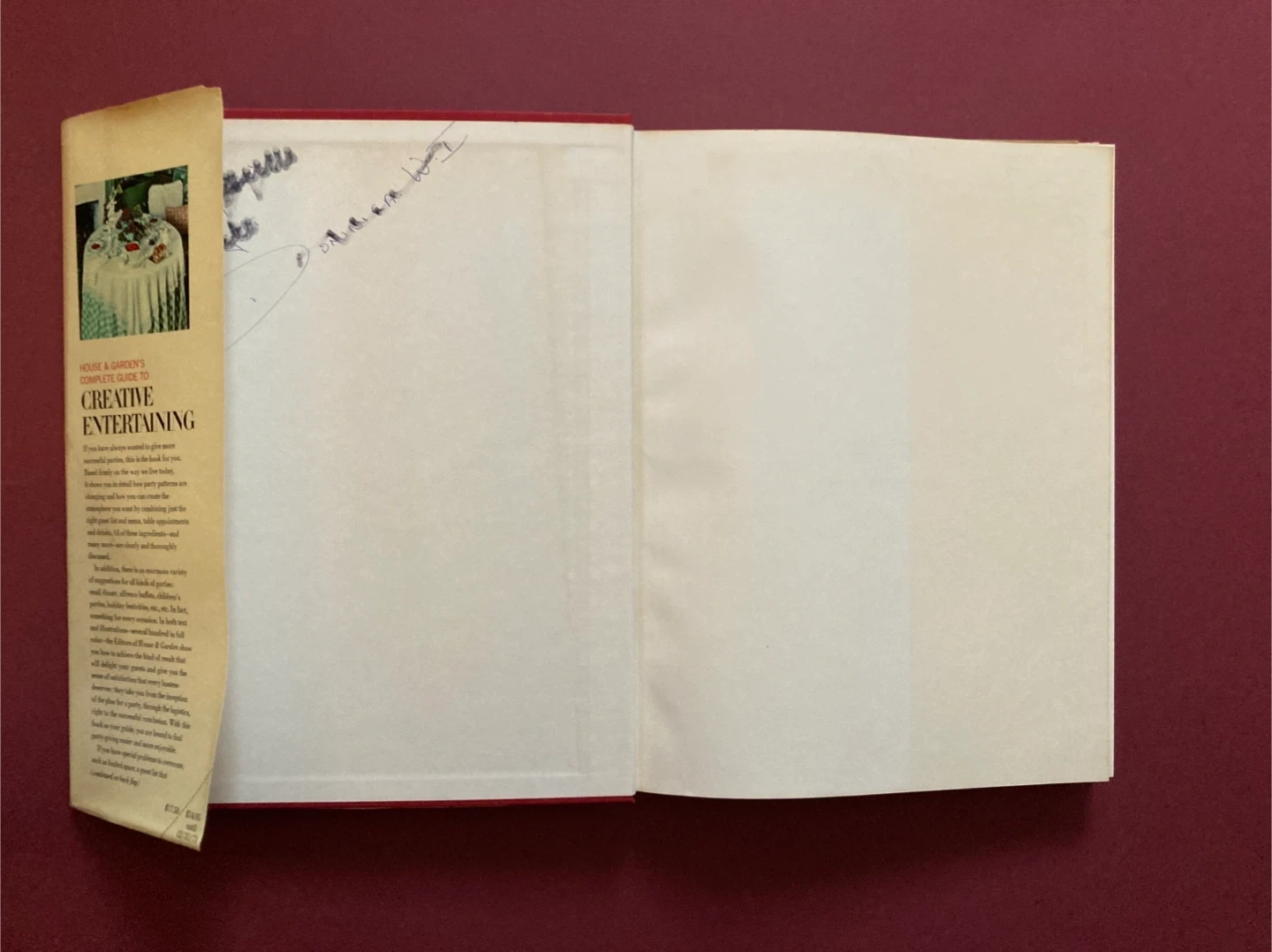 "House & Garden's Complete Guide to Creative Entertaining" 1971. This vintage book offers insights and ideas for hosting parties, setting tables, and creating a stylish atmosphere. Amazing resource of mid-century decor, design, and home trends. Filled with photos on almost every page There is some wear and tear on the dust jacket consistent with age and some writing on the inside cover from its previous owner, but otherwise in very good condition. Selling on online marketplaces like Chairish for $125 US.