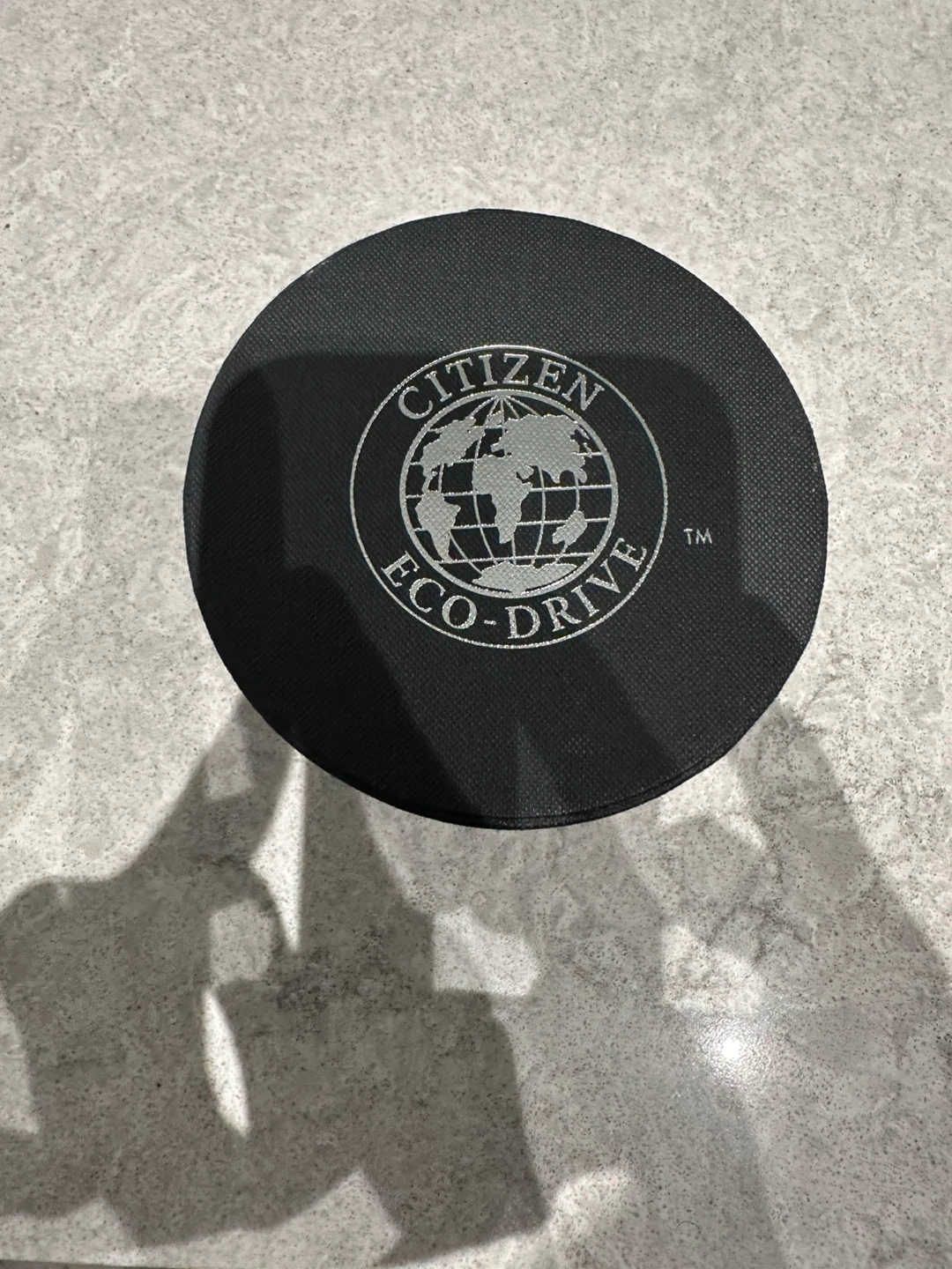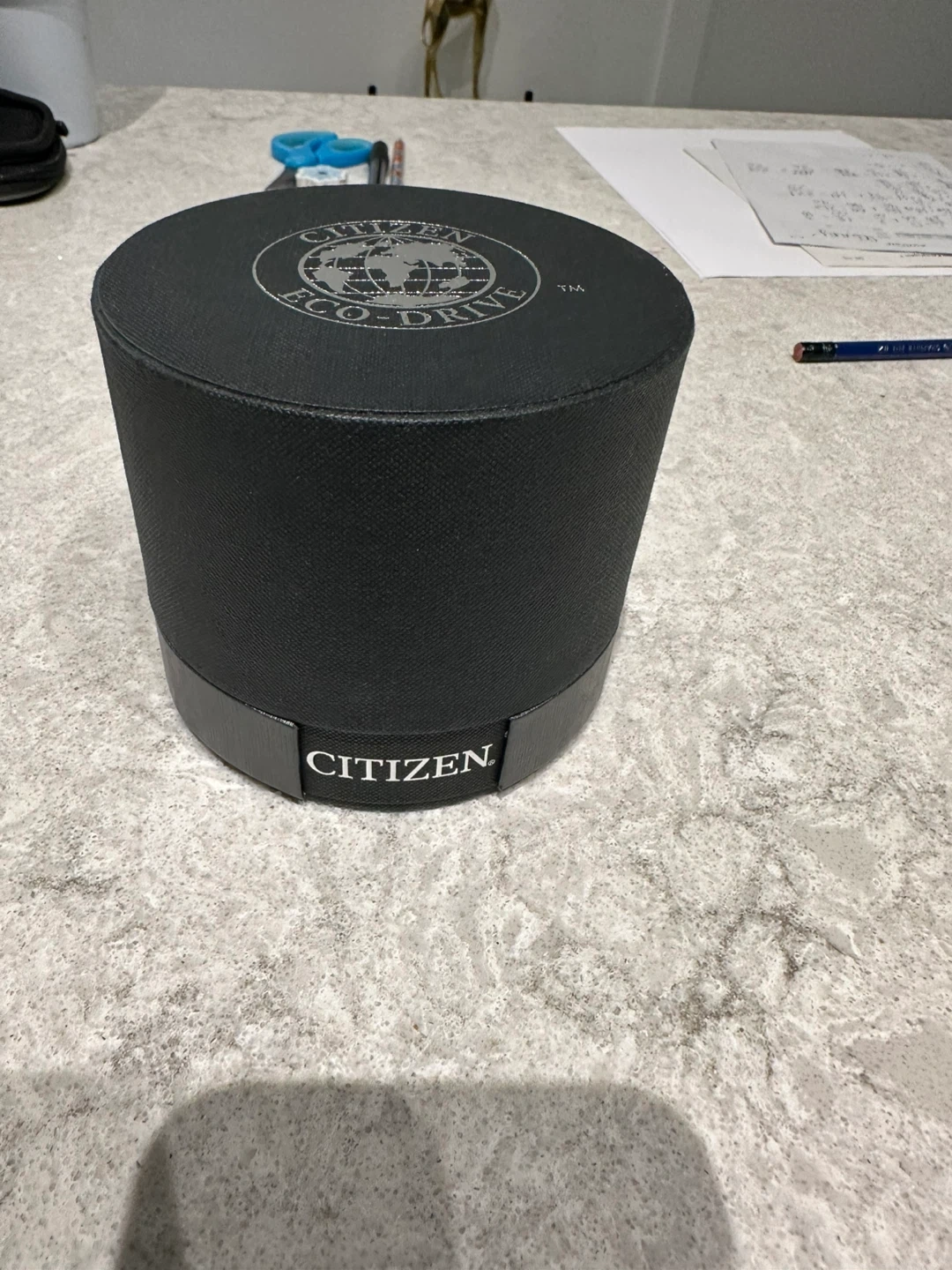 Citizen Eco-Drive watch with a stainless steel and gold-tone band. It's a stylish timepiece that runs on light power. Includes the original Citizen box.