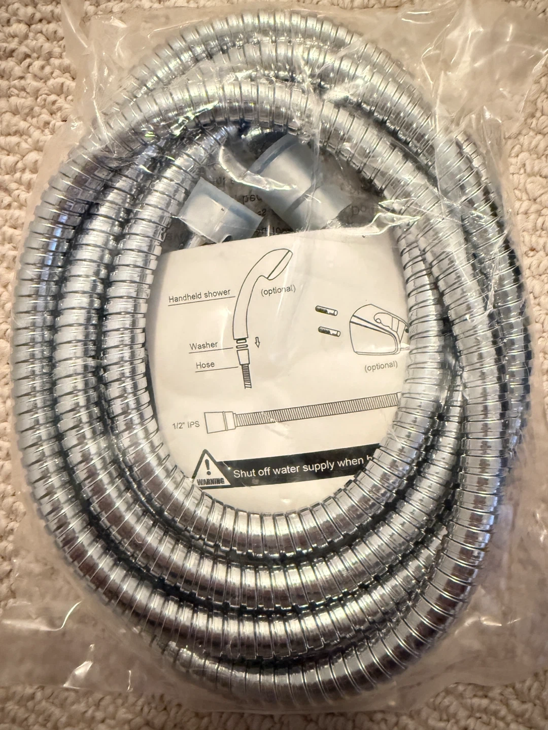 This is a replacement hose for a handheld shower. It connects with 1/2" IPS fittings. Ensure the water supply is shut off when the hose is not in use.