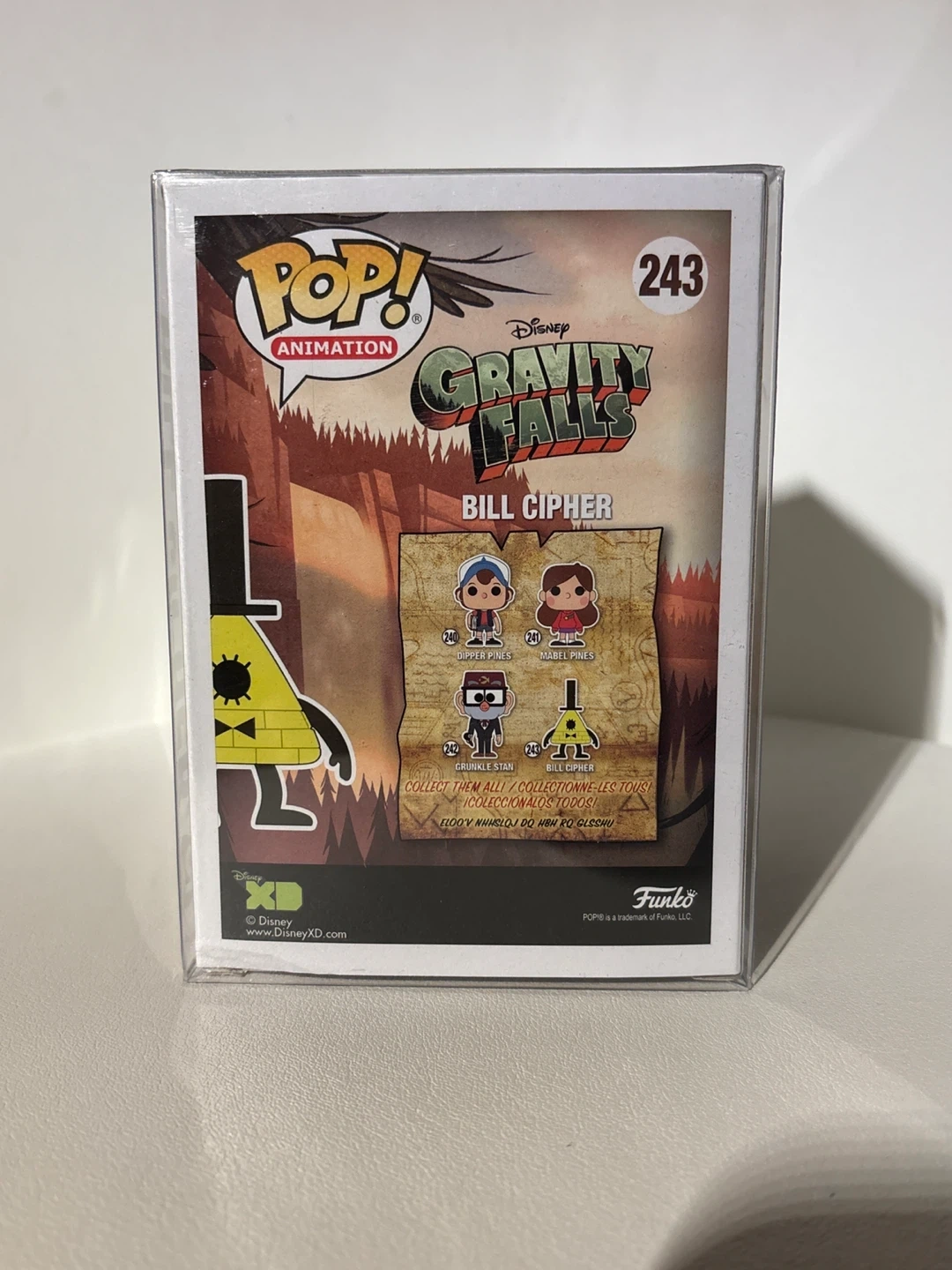 This is a Funko Pop! vinyl figure of Bill Cipher from Disney's Gravity Falls. It's model number 243. The figure comes in its original box and is in perfect condition unmoved.
