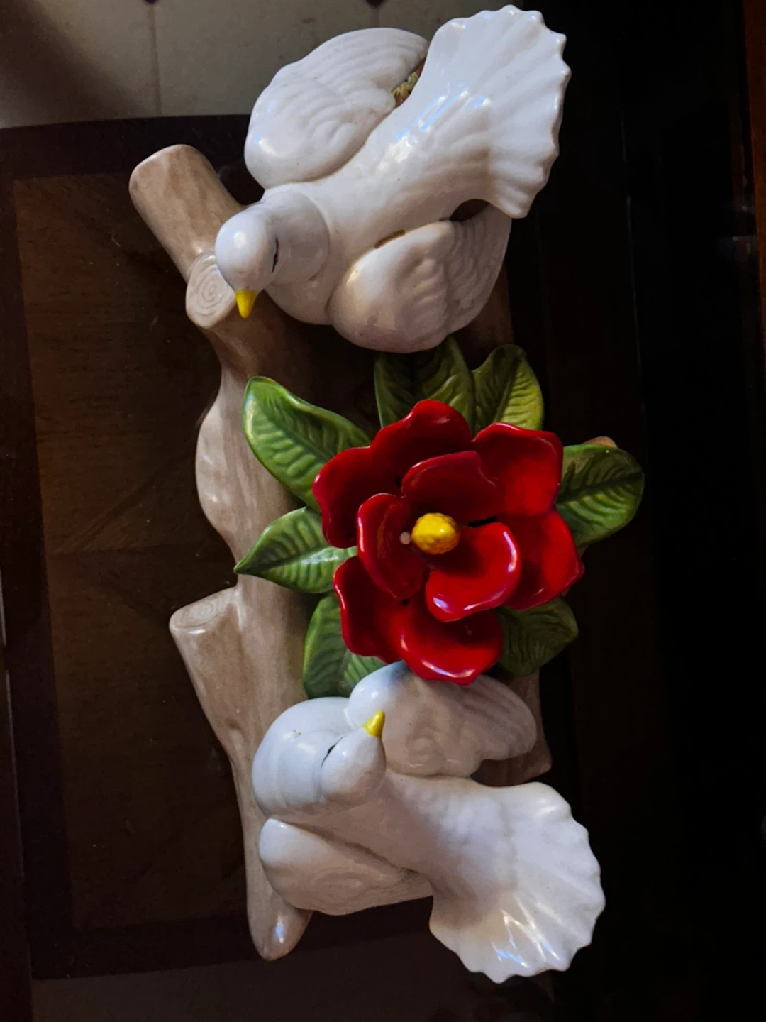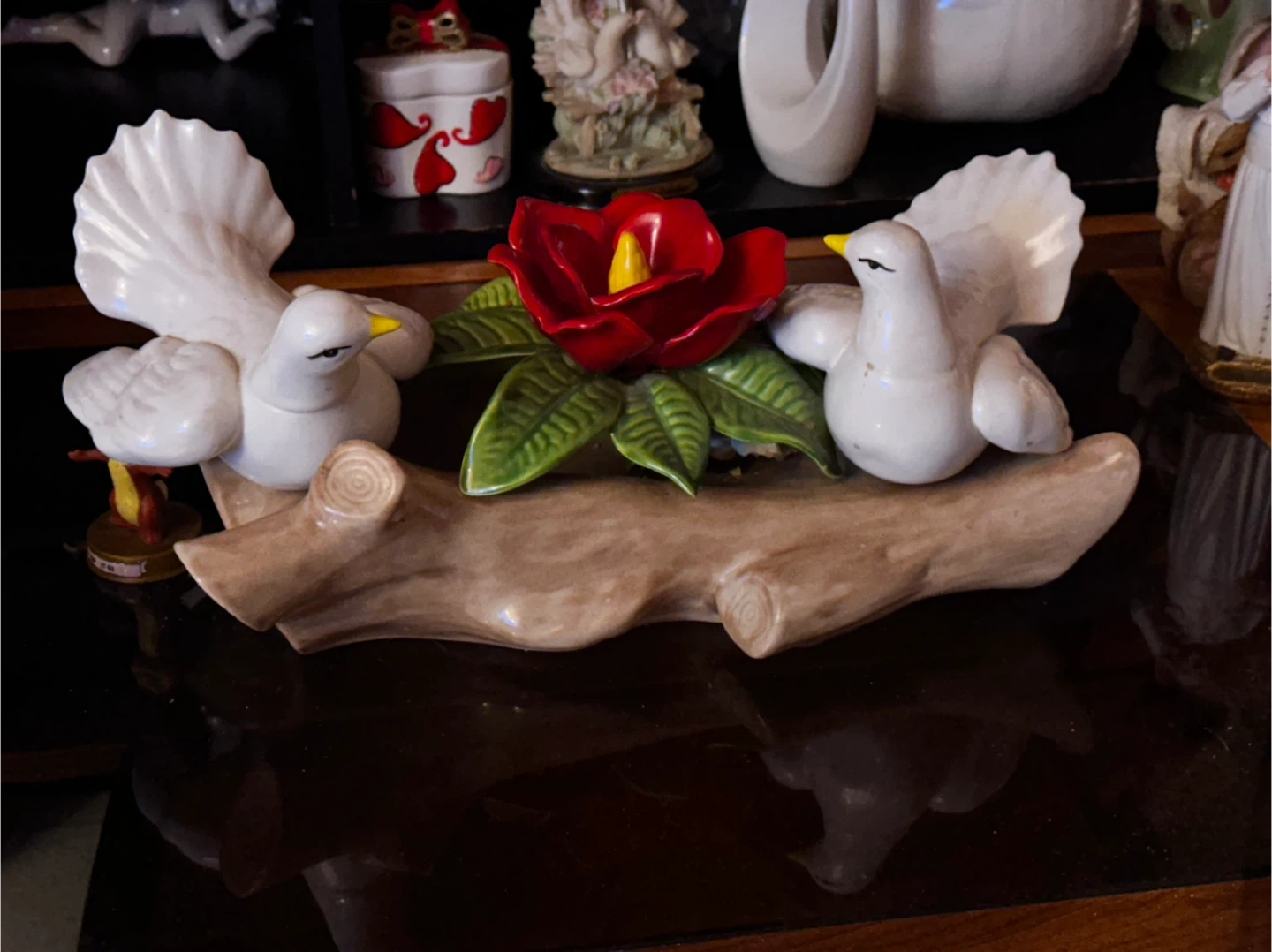 Ceramic Doves and Red Flower Figurine