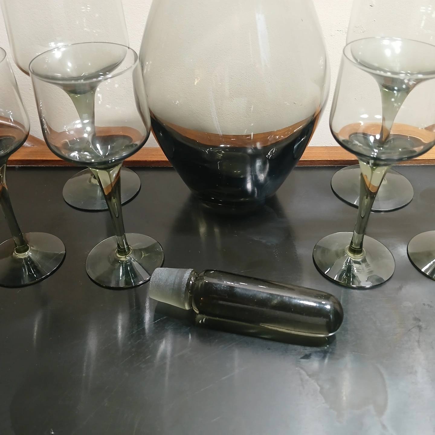 Mid Century Orrefors Smoke Glass Decanter Set by Bjorn Wiinblad