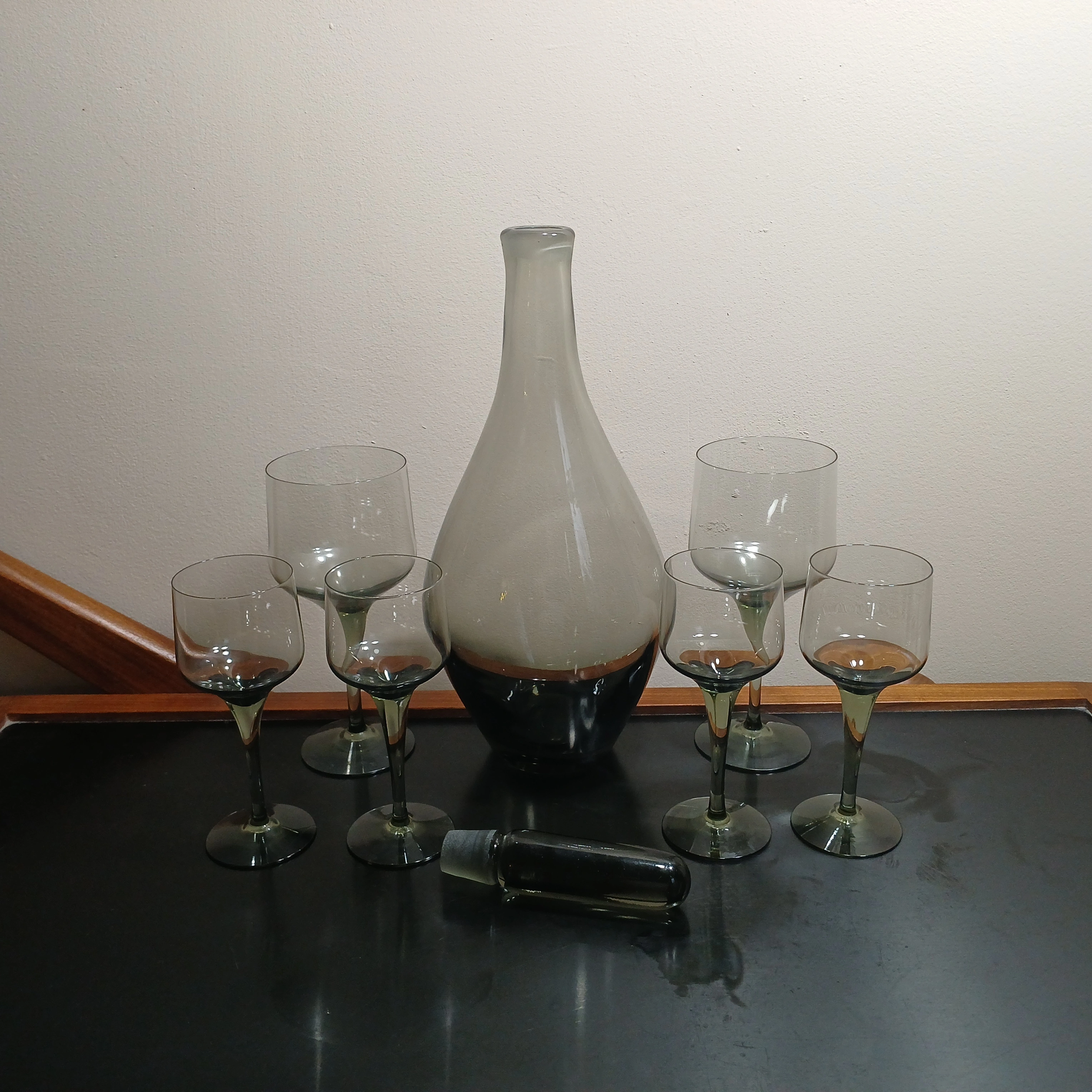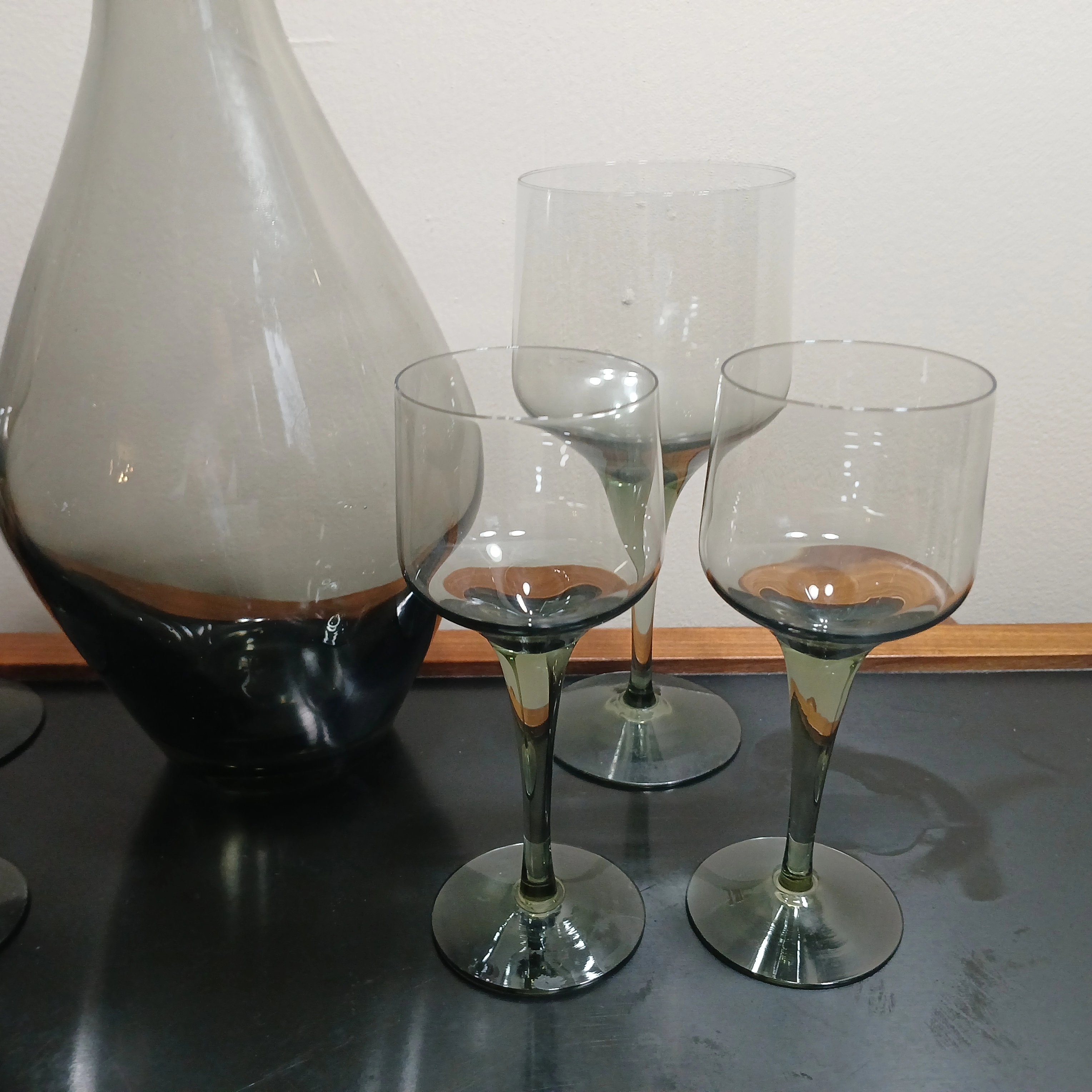 Mid Century Orrefors Smoke Glass Decanter Set by Bjorn Wiinblad