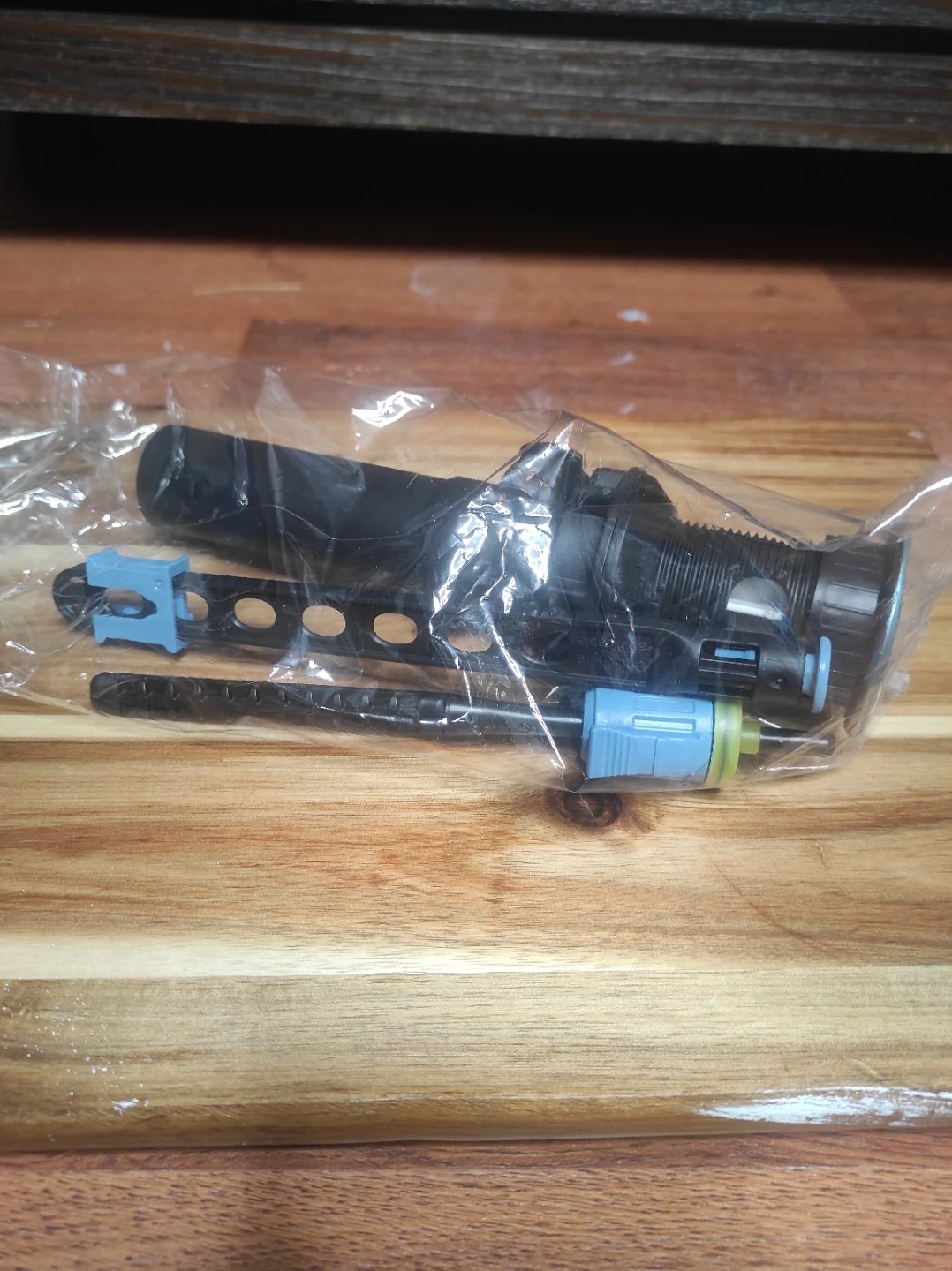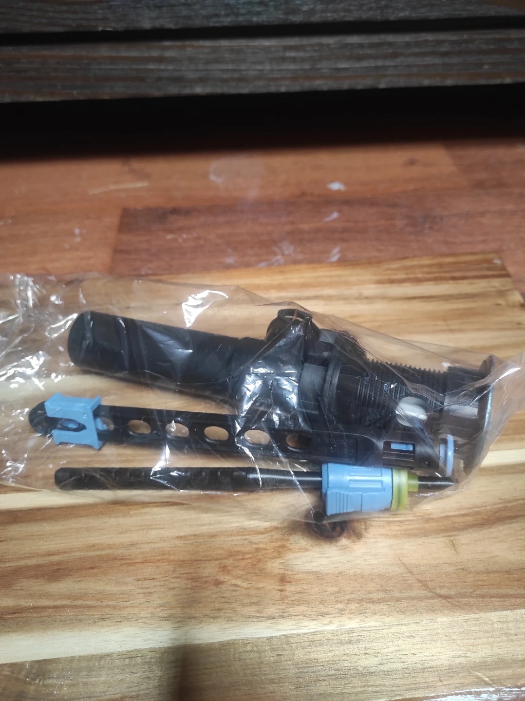 This is a replacement fill valve kit for a toilet tank. It's made of durable plastic. This kit is useful for repairing a leaky or malfunctioning toilet flush system.