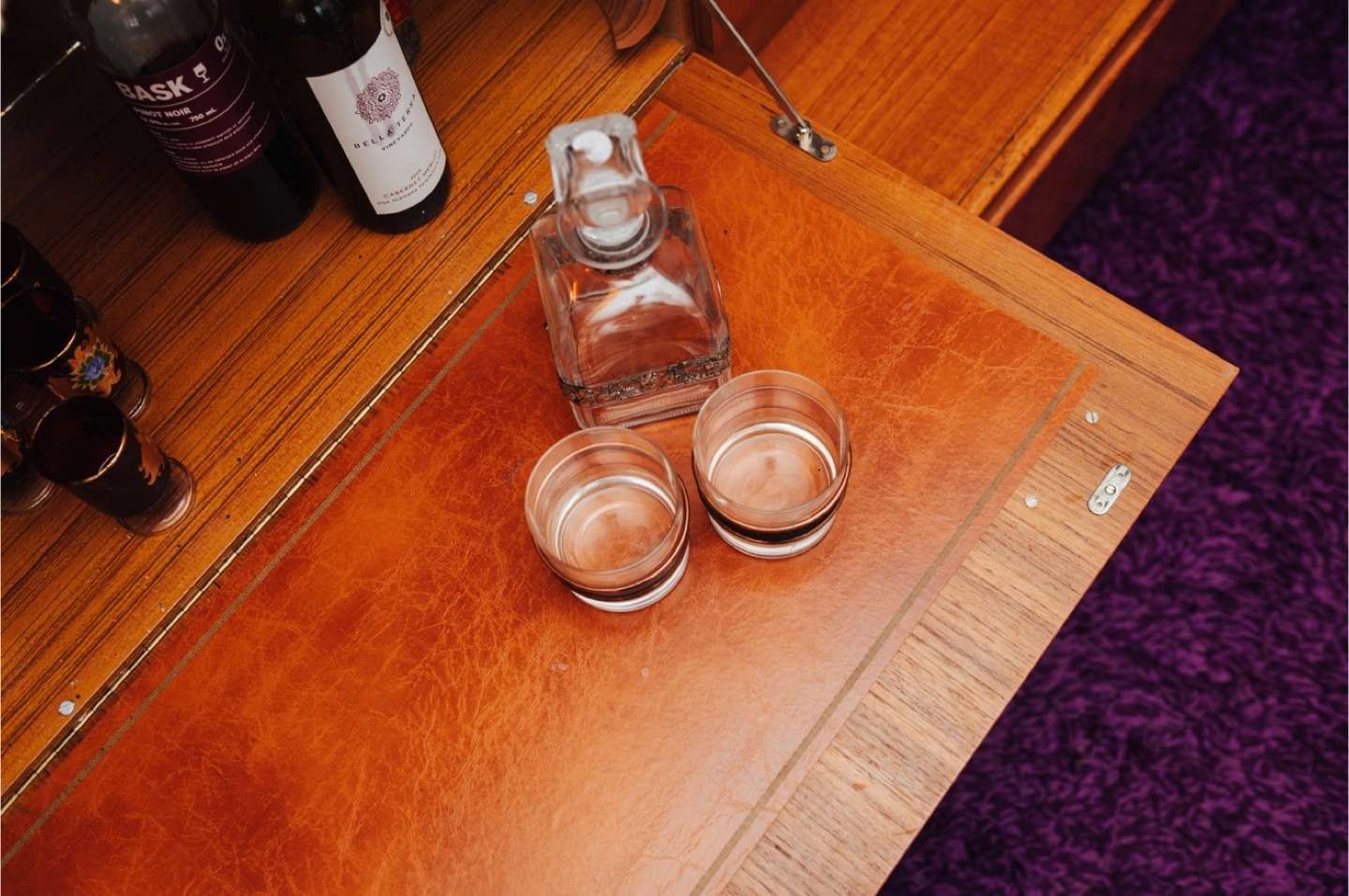 • Tip-down bar cabinet with mirrored interior
