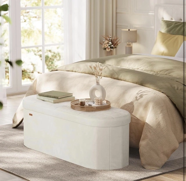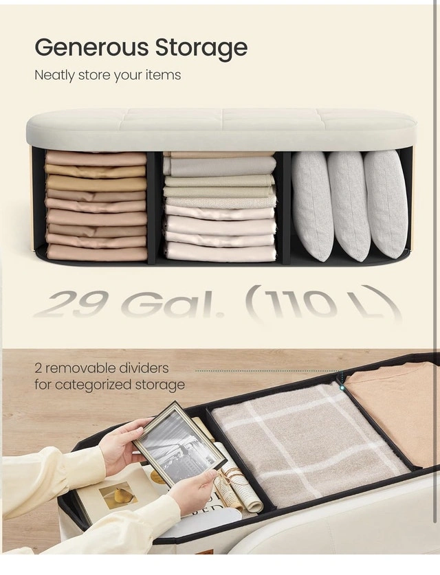 This brand new folding ottoman with storage is perfect for adding extra seating and storage to any room. Its sleek design and durable construction make it a versatile and stylish addition to your home decor.
