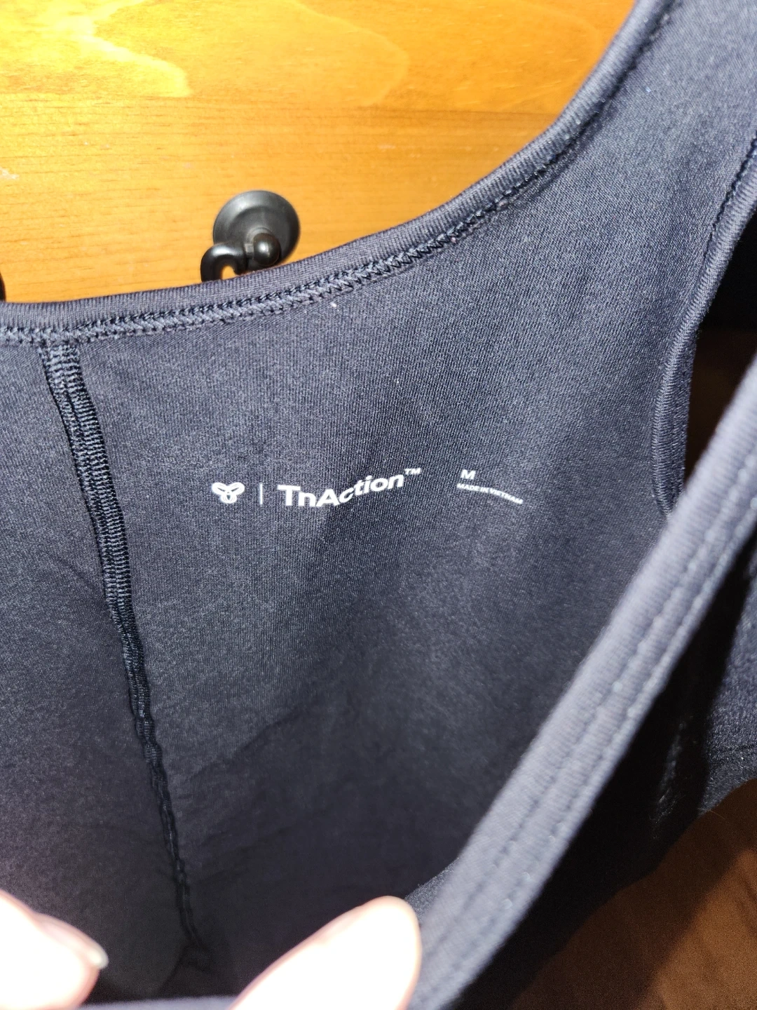 This is a black TnAction bodysuit tank top. It's a size medium. Very comfortable to wear for various activities. Maybe we're it 3 times before it was too big