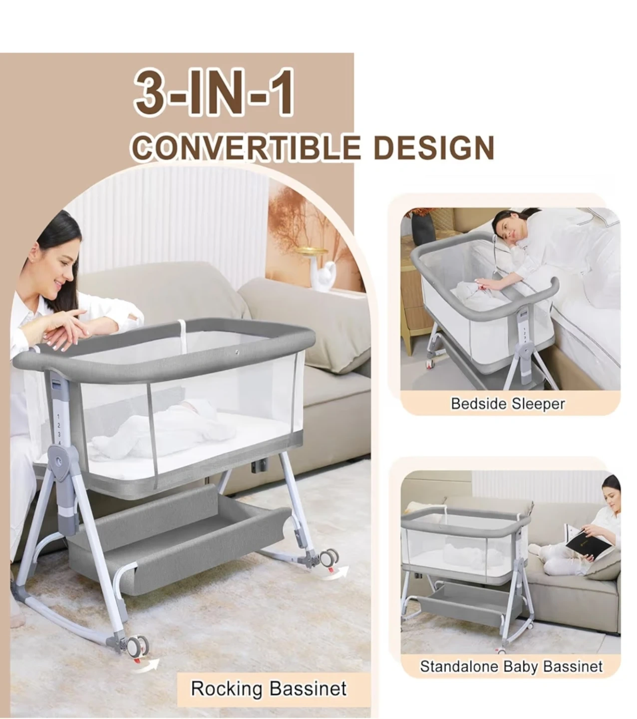 3-in-1 Convertible Baby Bassinet and Bedside Sleeper