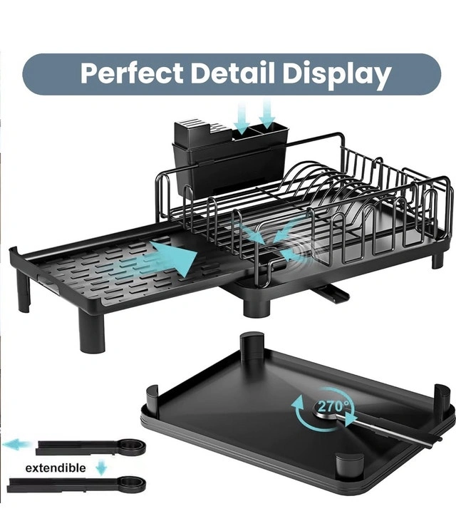 Keep your kitchen tidy with this brand new, large dish drying rack, perfect for any modern home. This spacious rack is designed to efficiently dry a large number of dishes, utensils, and cookware all at once. Its sturdy construction ensures stability and durability, making it a reliable addition to your kitchen. Features: Large capacity for drying multiple items, Durable and stable construction, Removable utensil holder, Extendable design. If you're seeing this ad, the dish drying rack is still available!
