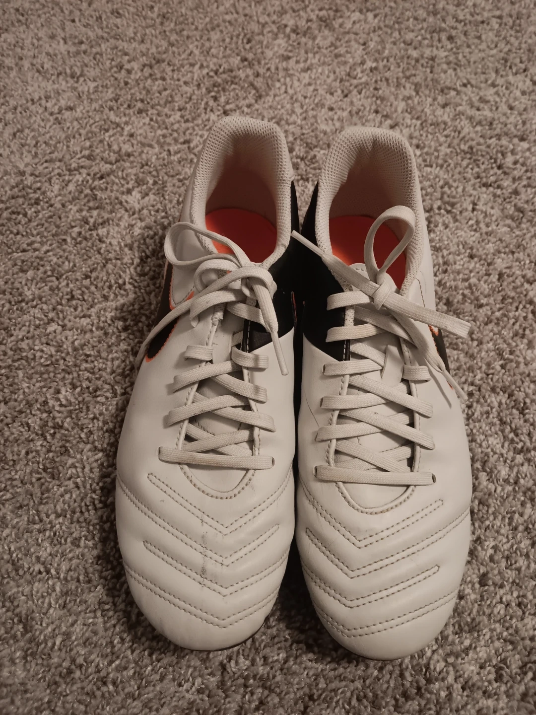 Buy & SellNike Tiempo Soccer CleatsNike Tiempo Soccer Cleats$17White and orange Nike Tiempo soccer cleats. Lace-up closure for a secure fit. These cleats are ready for the soccer pitch!ConditionLike newWHERE TO MEETCheck LocationView MapSELLEROmarJackson100 reviews0 chats·0 favorites·8 viewsSEND CHAT TO SELLERHi Omar! I’m interested in your listing.Hi Omar! I’m interested in your listing.Get the Karrot app to chatSign In to chat