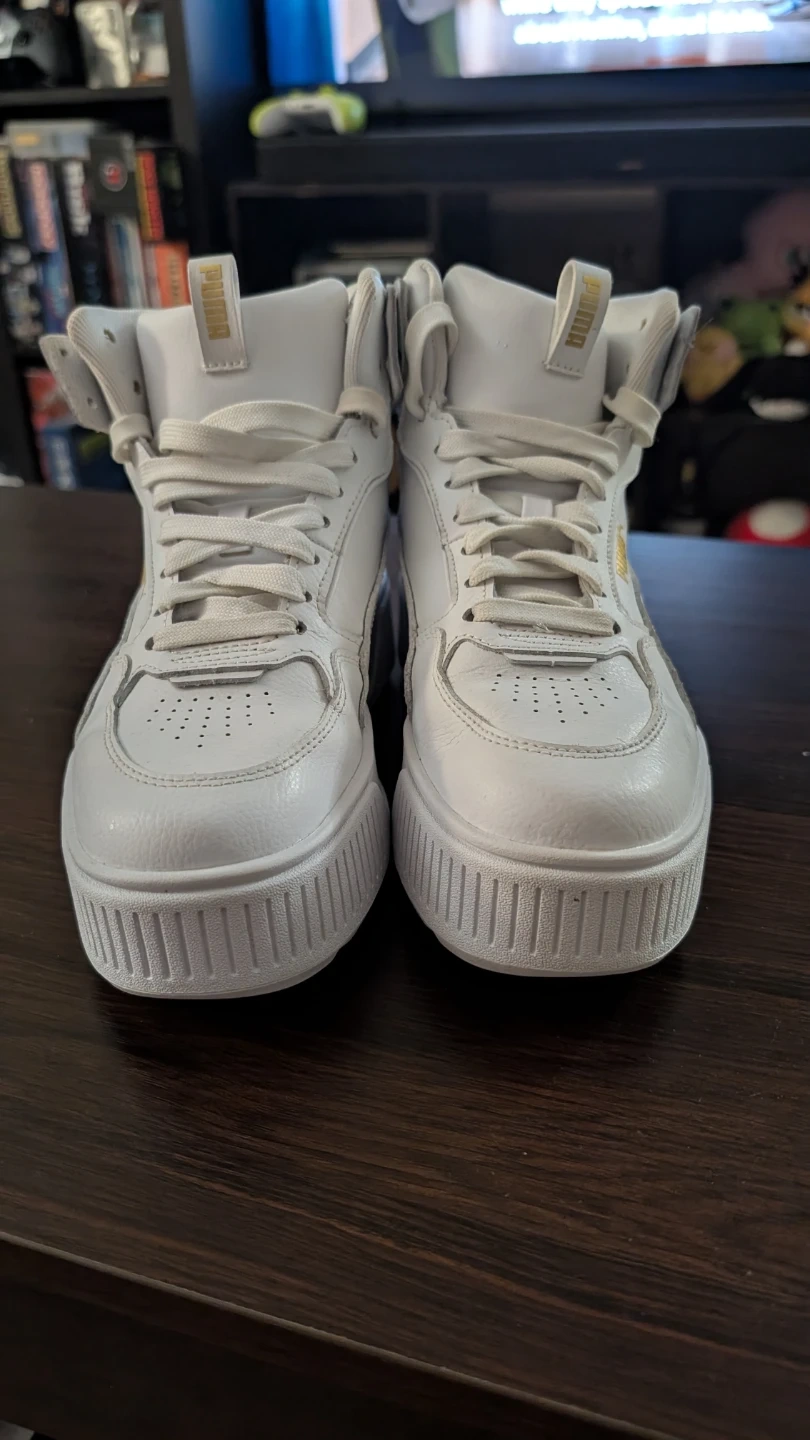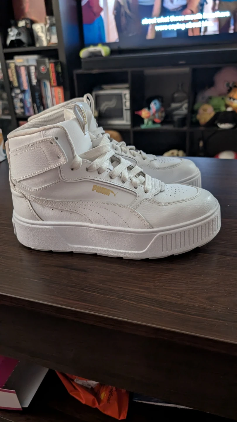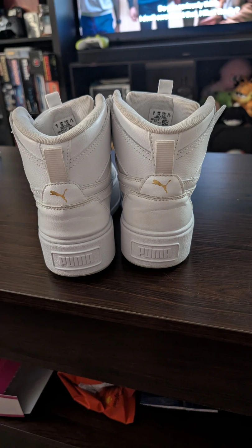 Buy & SellPuma White High Top Sneakers - Women's Size 7.5 CAPuma White High Top Sneakers - Women's Size 7.5 CA$12These are white Puma high-top sneakers. Made in China. Leather upper. These shoes are great for casual wear.ConditionNewWHERE TO MEETMoody ParkView MapSELLERverifiedJaceKelvin831 review0 chats·0 favorites·23 viewsSEND CHAT TO SELLERHi Jace! I’m interested in your listing.Hi Jace! I’m interested in your listing.Get the Karrot app to chatSign In to chat