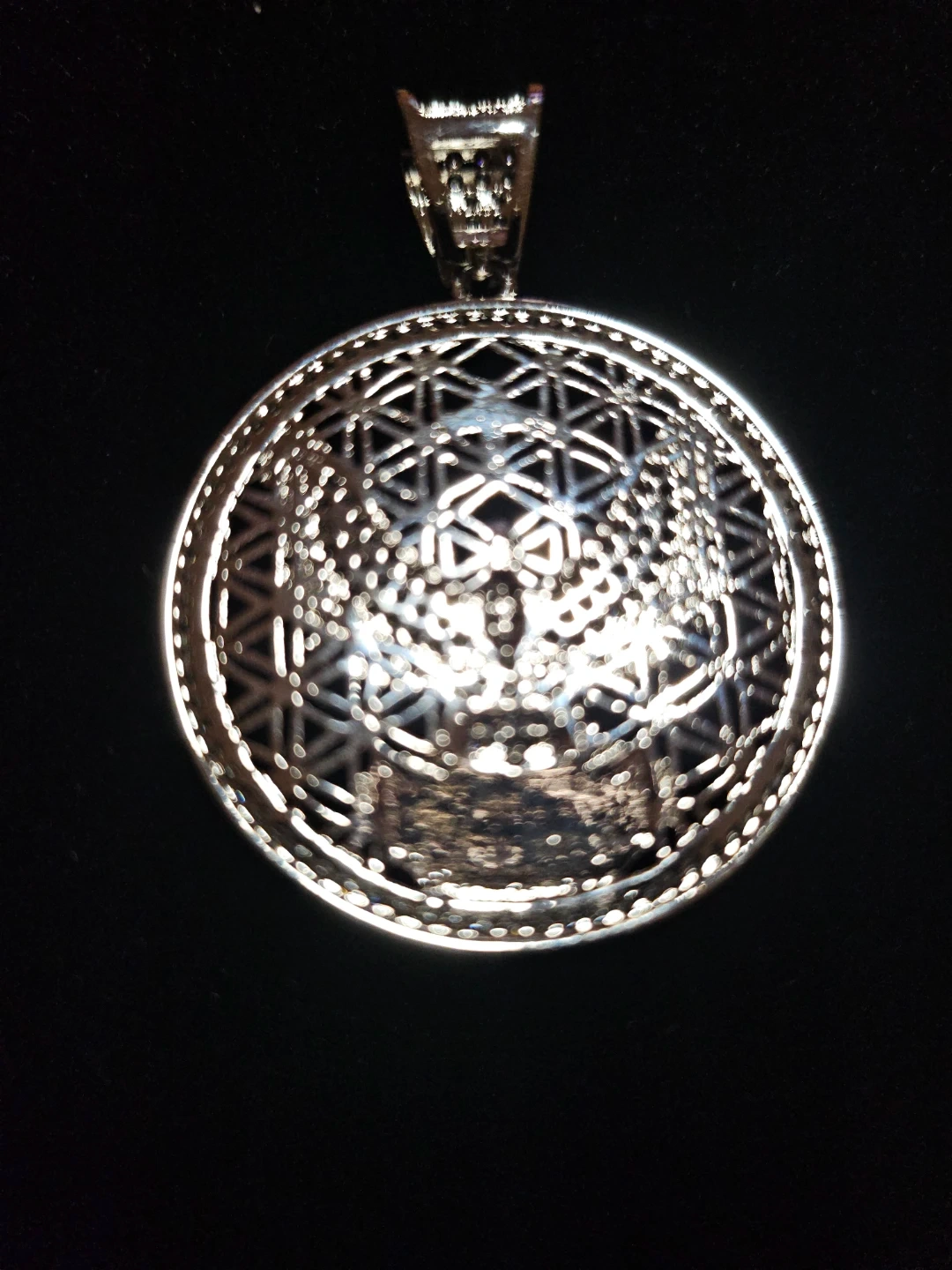 This pendant features an intricate eagle design with a cross at its center. It's detailed with small, sparkling stones around the outer edge. The metal appears to be silver-toned. This piece offers a striking visual appeal.