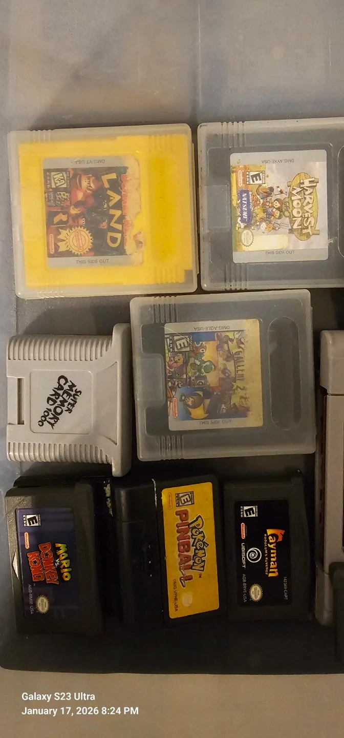Buy & SellCollection of Nintendo Video Game CartridgesCollection of Nintendo Video Game Cartridges$250Bundle of various Nintendo video game cartridges for SNES, Game Boy, and Game Boy Advance. Titles include Mario, Tetris, Star Fox, and more.ConditionGoodWHERE TO MEETCheck LocationView MapSELLERverifiedPatrickHigh Park N1647 reviews0 chats·2 favorites·72 viewsSEND CHAT TO SELLERHi Patrick! I’m interested in your listing.Hi Patrick! I’m interested in your listing.Get the Karrot app to chatSign In to chat