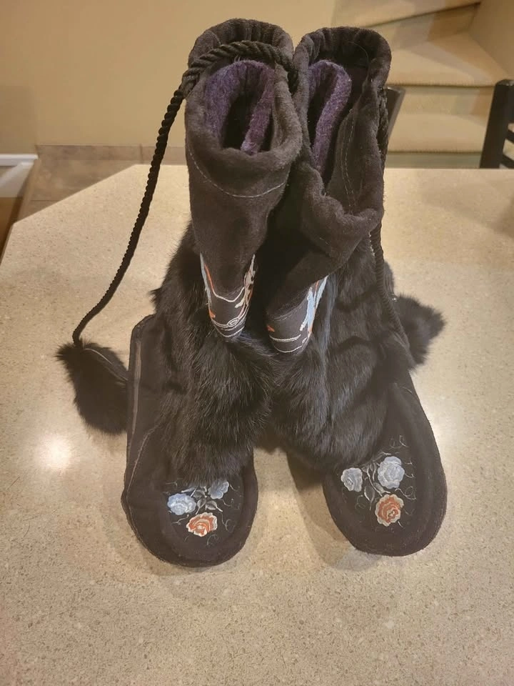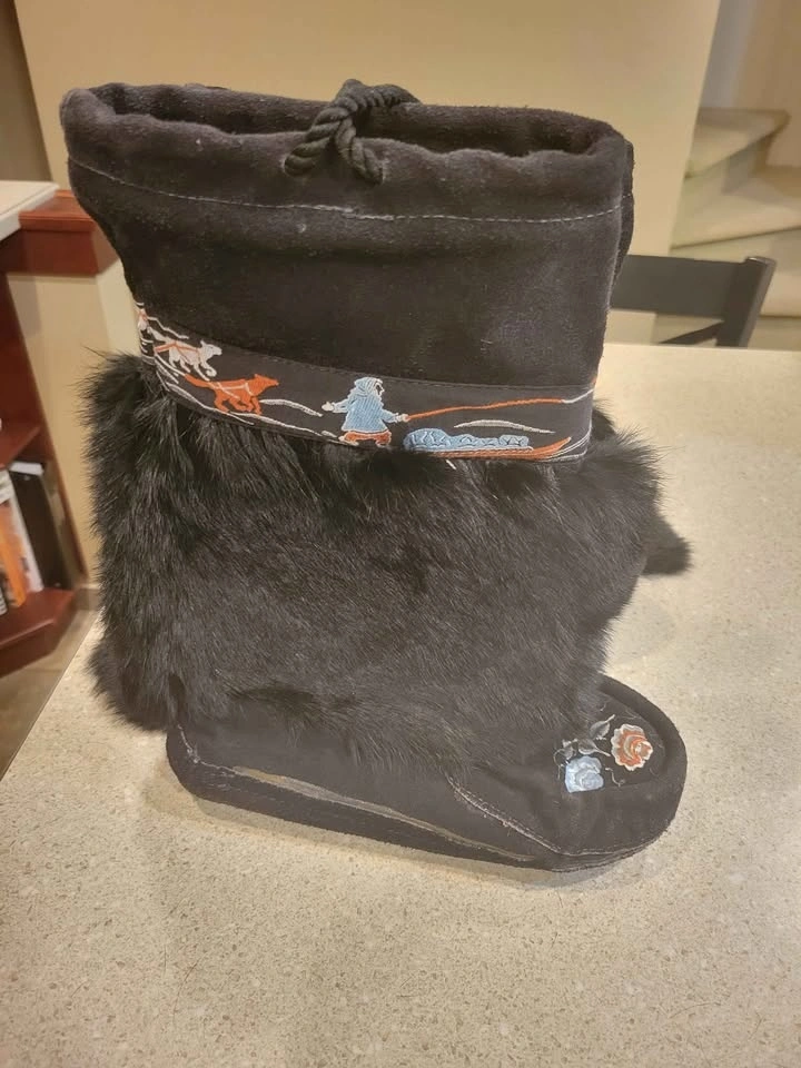 Buy & SellManitobah Mukluks Black Suede Rabbit Fur BootsManitobah Mukluks Black Suede Rabbit Fur Boots$198A pair of Manitobah Mukluks black suede and rabbit fur mukluk boots, featuring a traditional floral design on the toe and patterned ribbon trim.ConditionLike newSize9WHERE TO MEETA&W parking lot 1944 Comolake Ave CoquitlamView MapSELLERverified787742Central Coquitlam1044 reviews0 chats·1 favorites·21 viewsSEND CHAT TO SELLERHi 787742! I’m interested in your listing.Hi 787742! I’m interested in your listing.Get the Karrot app to chatSign In to chat