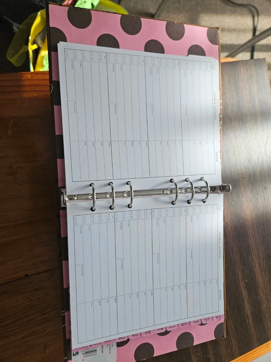 This is a vintage cassette tape storage box, 34 tapes, with a floral embroidered cover. It includes a binder-style address book with pink polka dot accents. The box holds many cassette tapes and comes with the address book inserts.