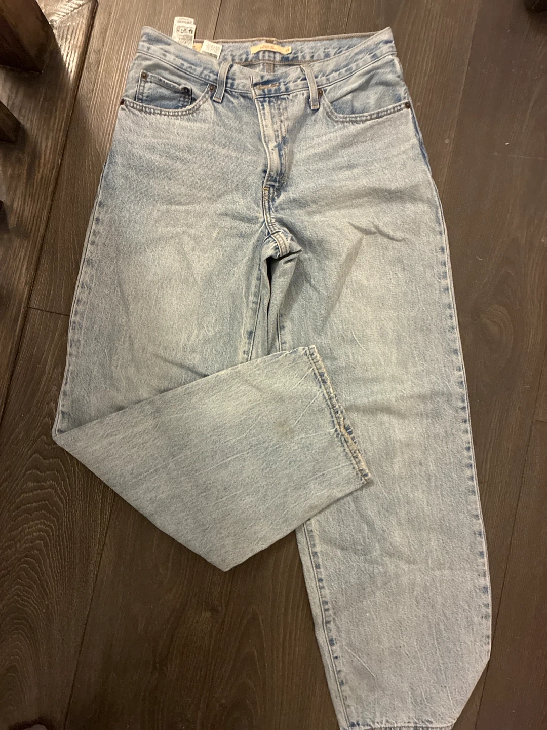 These are Levi's women's light wash denim jeans. They're made from classic denim material. Perfect for everyday wear!