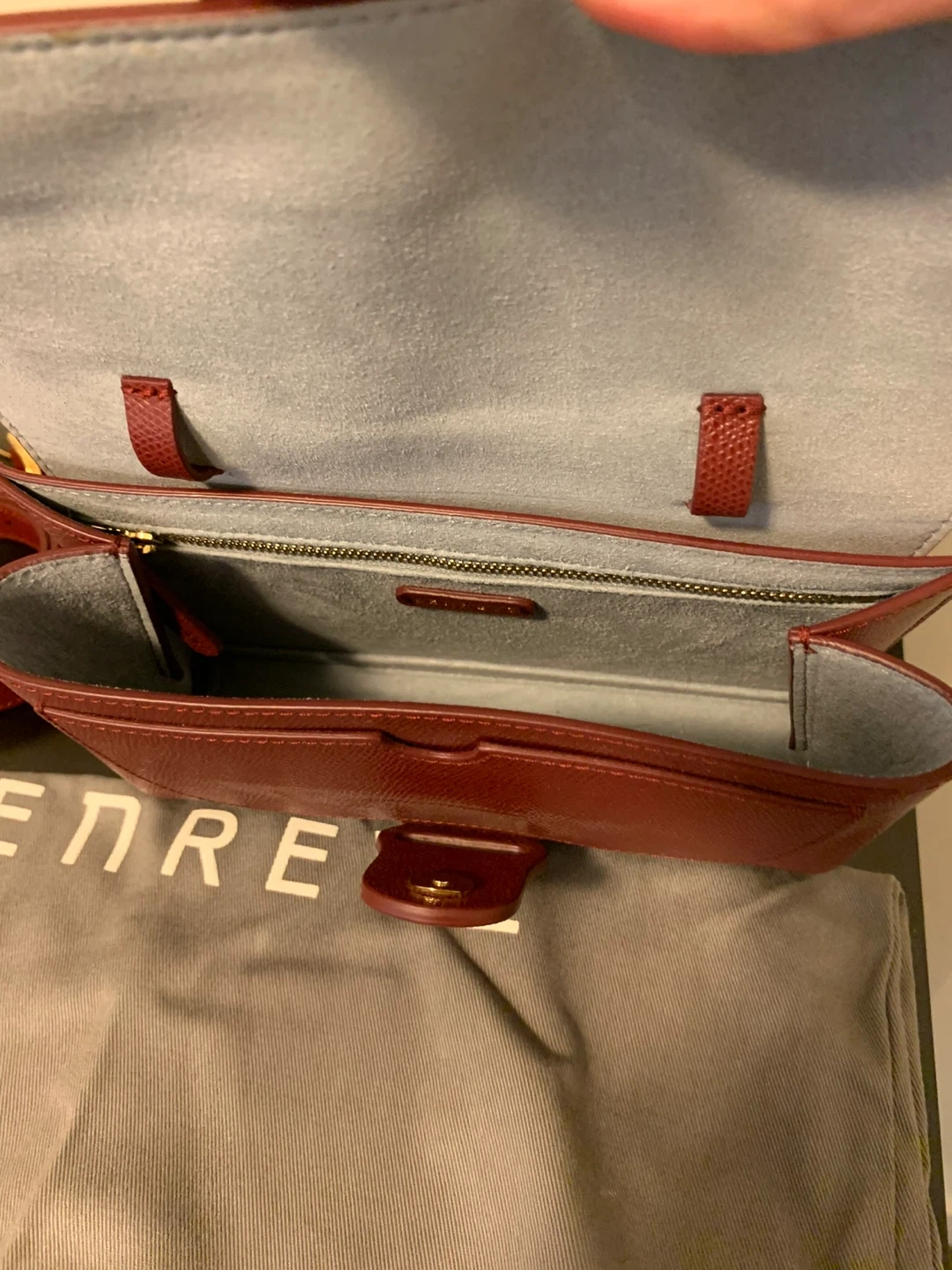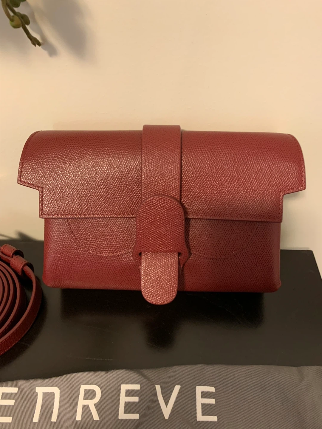 This SENREVE belt bag is made from textured burgundy leather. It comes with an adjustable leather strap, dust bag and receipt. Never been worn.