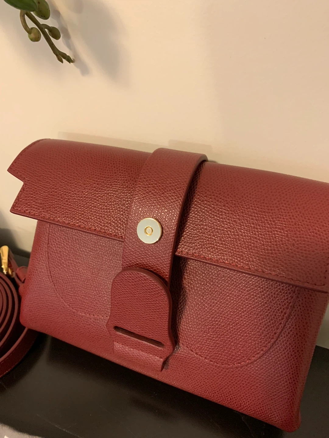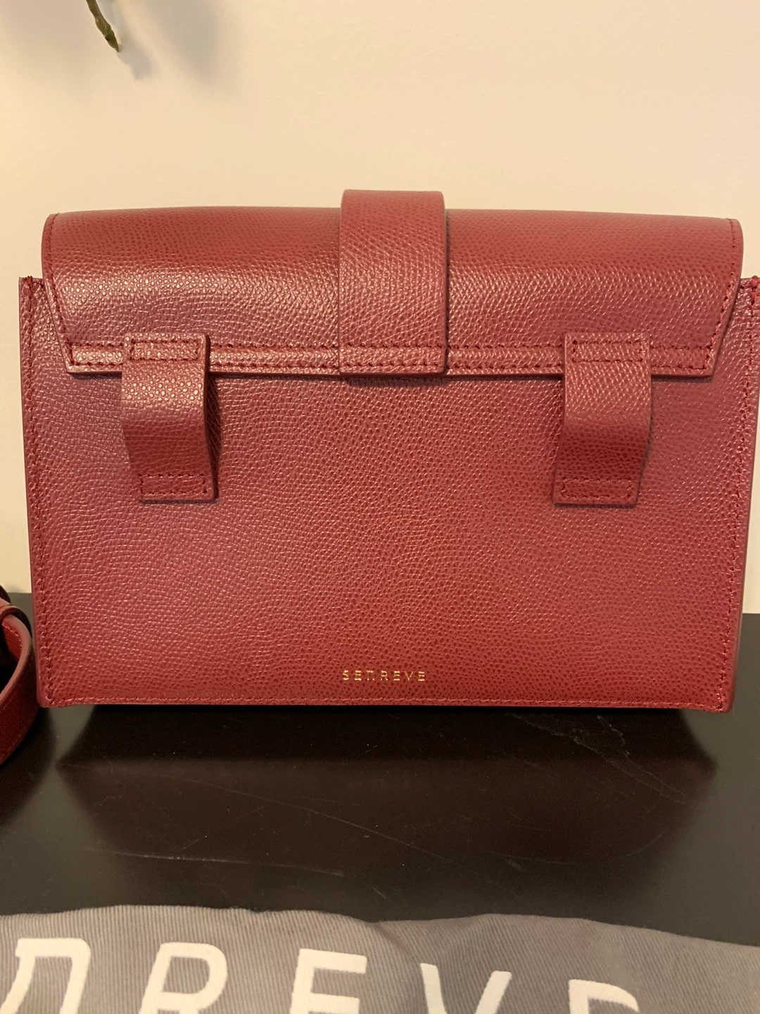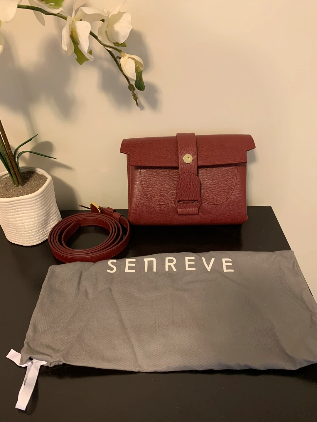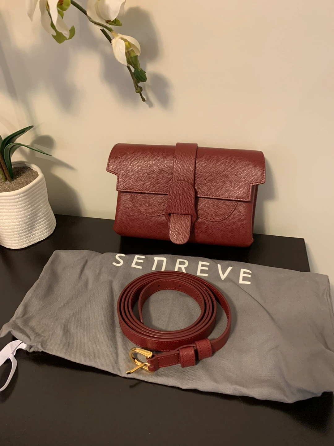 This SENREVE belt bag is made from textured burgundy leather. It comes with an adjustable leather strap, dust bag and receipt. Never been worn.