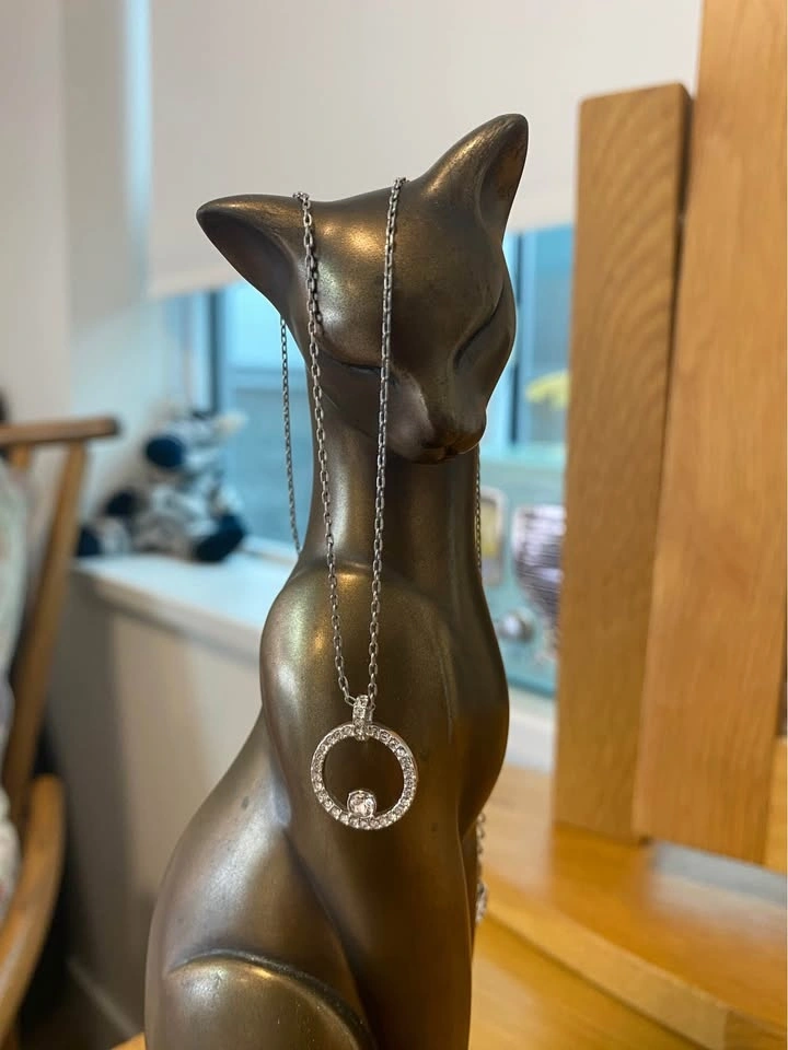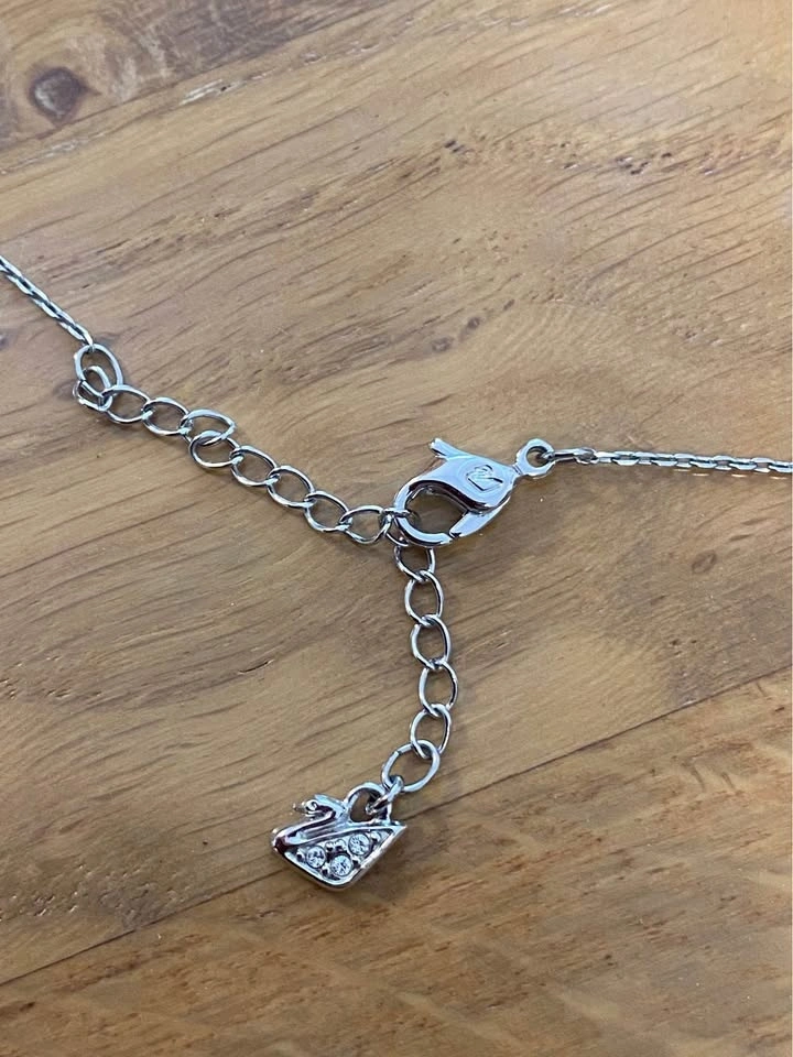 Beautiful Swarovski pendant with chain, in perfect condition. Has been worn just once or twice. Features crystals in the pendant with a lobster style clasp; rhodium plated. Chain length: 38 cm (15”). Pick-up ONLY at Boundary and Hastings.