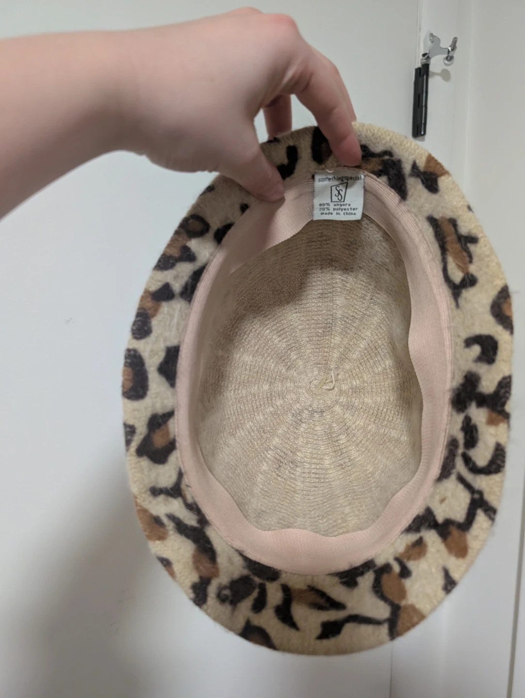 A cozy bucket hat featuring a fun leopard print design. Made with a blend of 80% angora and 20% polyester. It's perfect for adding a touch of style to your outfit on cooler days!