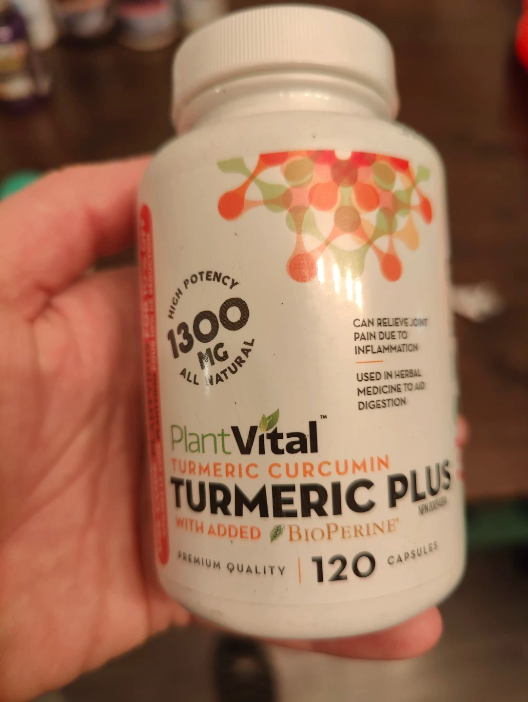 PlantVital Turmeric Curcumin Plus capsules with Bioperine. Each serving contains 1300 mg of all-natural turmeric curcumin. Can relieve joint pain due to inflammation. Used in herbal medicine to aid digestion.