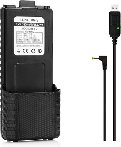 This is a new Baofeng BL-5L 3800mAh extended battery, still in its original pack. It's compatible with many Baofeng UV-5R series radios, including UV-5R, UV-5R Plus, UV-5RTP, UV-5R 8W, GT-5R, GT-5R Pro, UV-5G, and UV-5G Pro. It offers a high power capacity and long standby time, making it great for outdoor use or as a backup. The battery features built-in protection against overcharging, over-discharging, and overheating for safe operation. Includes a DC-USB charging cable with an LED indicator.