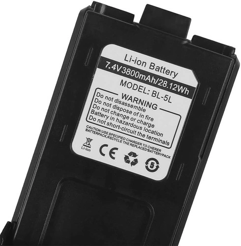 This is a new Baofeng BL-5L 3800mAh extended battery, still in its original pack. It's compatible with many Baofeng UV-5R series radios, including UV-5R, UV-5R Plus, UV-5RTP, UV-5R 8W, GT-5R, GT-5R Pro, UV-5G, and UV-5G Pro. It offers a high power capacity and long standby time, making it great for outdoor use or as a backup. The battery features built-in protection against overcharging, over-discharging, and overheating for safe operation. Includes a DC-USB charging cable with an LED indicator.