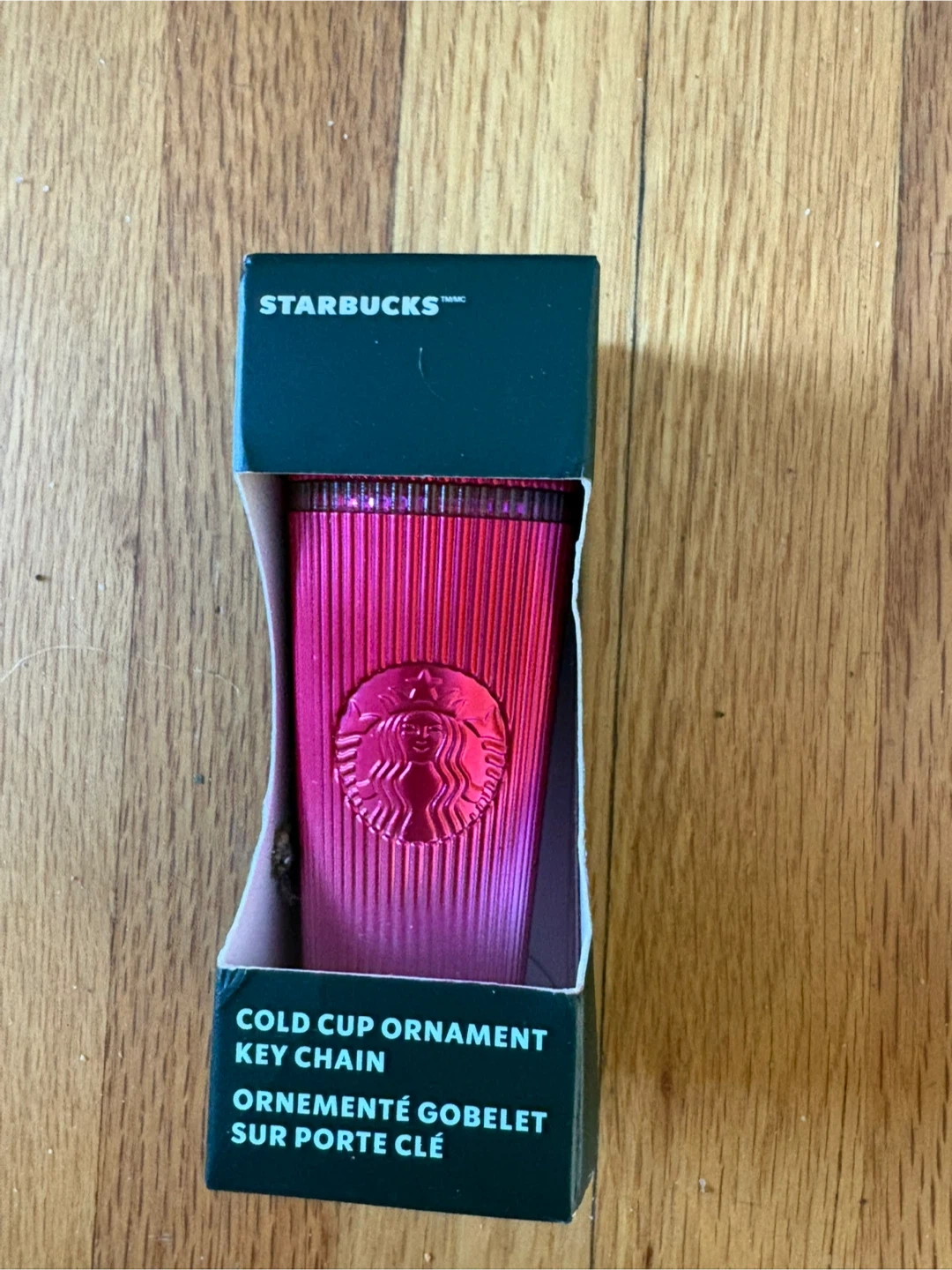This is a Starbucks cold cup ornament key chain. It's a metallic pink and purple colour. It comes in its original packaging and was manufactured in 2024.pickup at Morley trail NW