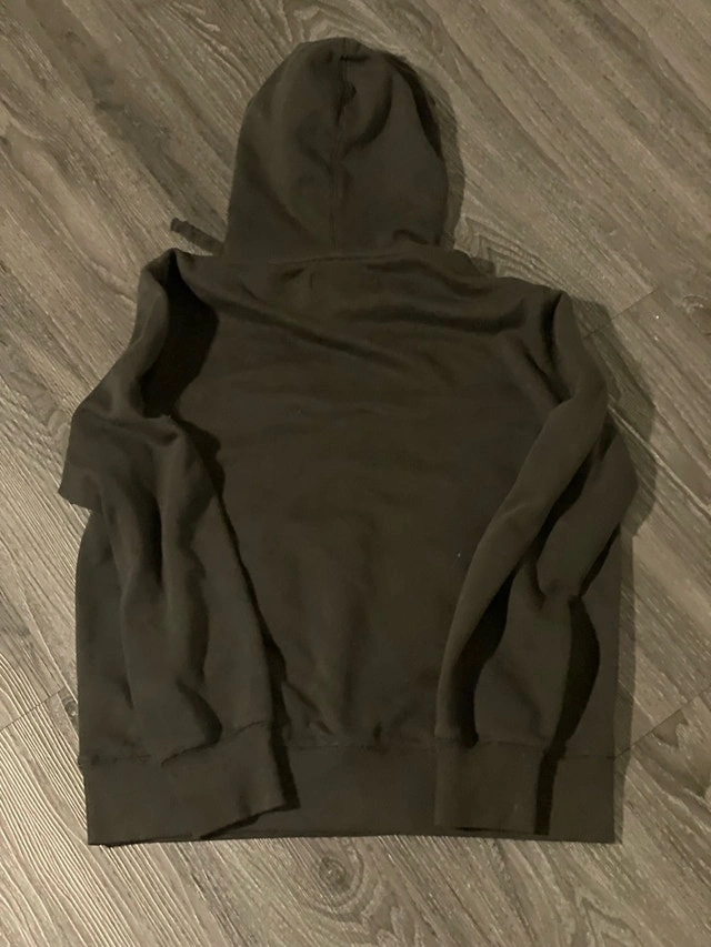 This is a soft, black hoodie in used condition. The hoodie is a size medium. Please review the images to see the condition of the hoodie. Size: Medium Colour: Black It's waiting for a new home and new adventures. If you see this ad, the hoodie is still available!