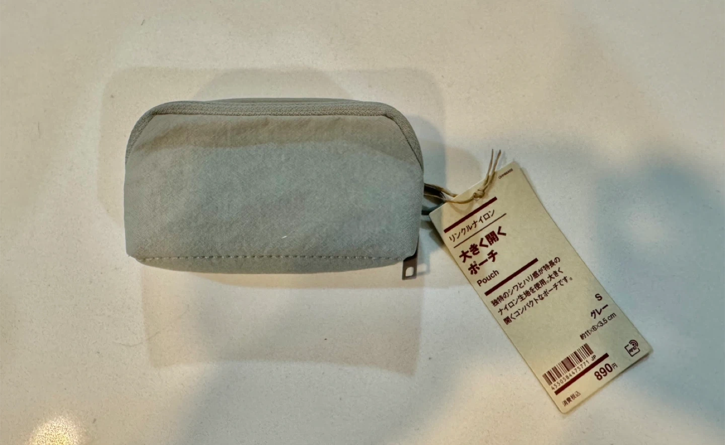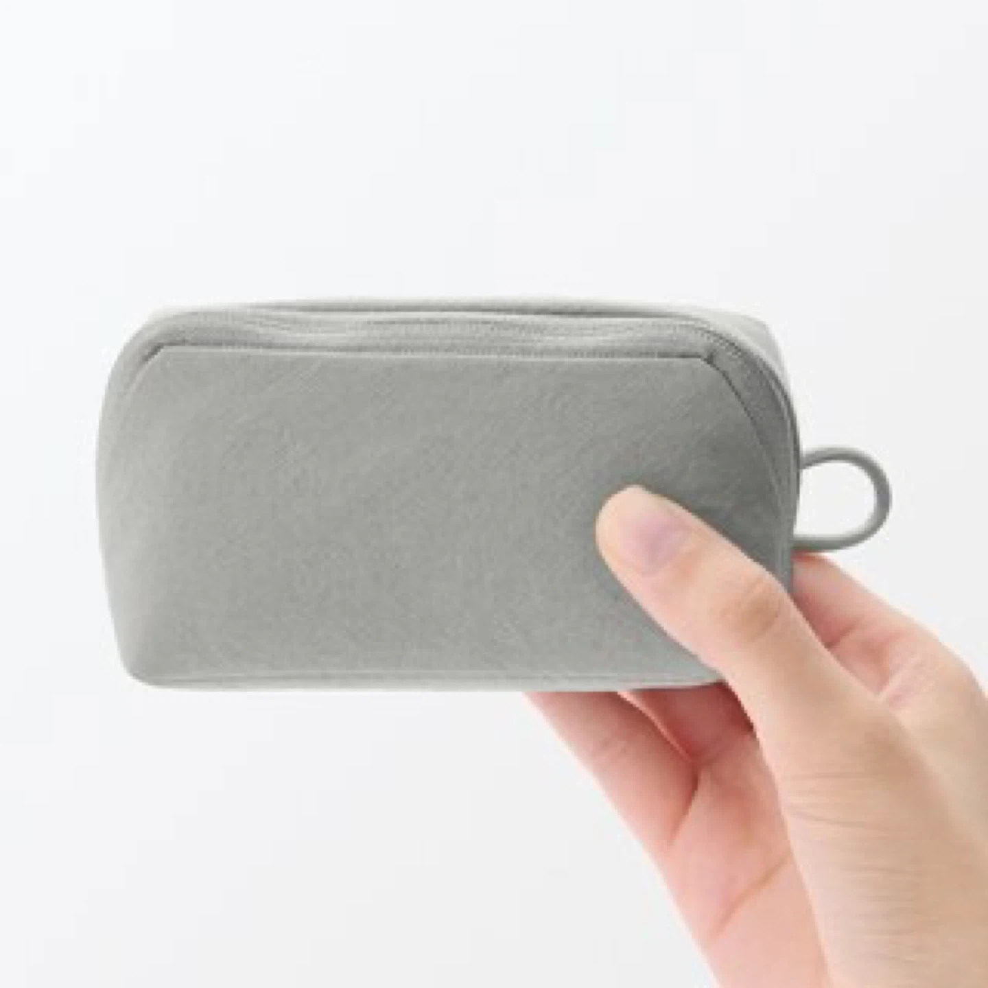 Muji Waterproof Wrinkle Nylon Wide-Open Pouch_Gray_NWT