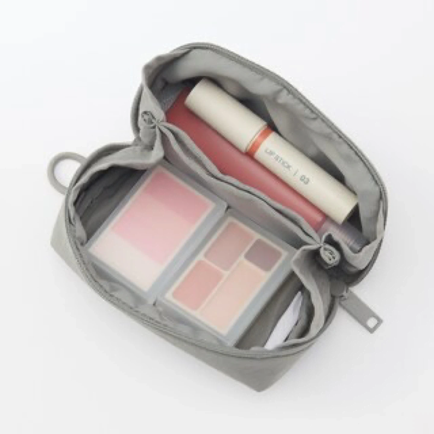 Muji Waterproof Wrinkle Nylon Wide-Open Pouch/Cosmetic Bag_Gray_NWT
