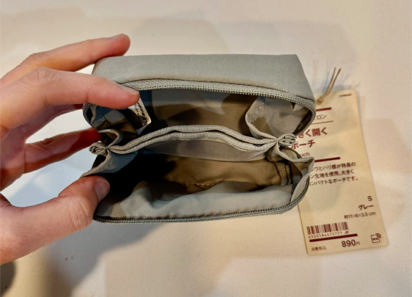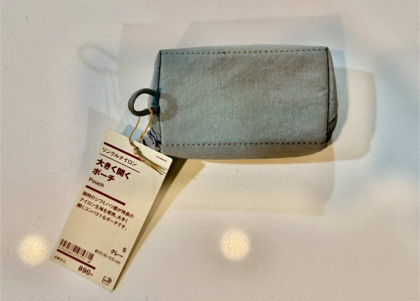 Muji Waterproof Wrinkle Nylon Wide-Open Pouch_Gray_NWT