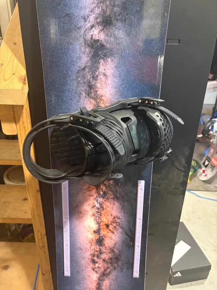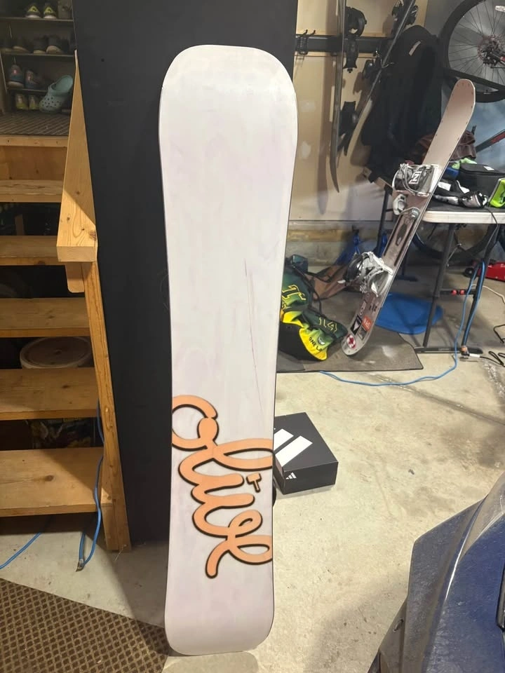 This is a 159cm olive camber snowboard, great for park riding and preventing edge catches. There's one scrape on the bottom, but it doesn't go down to the base. I'm selling it because I got a different board. The bindings are size medium and will fit up to a men's size 11. These are amazing all-mountain bindings.