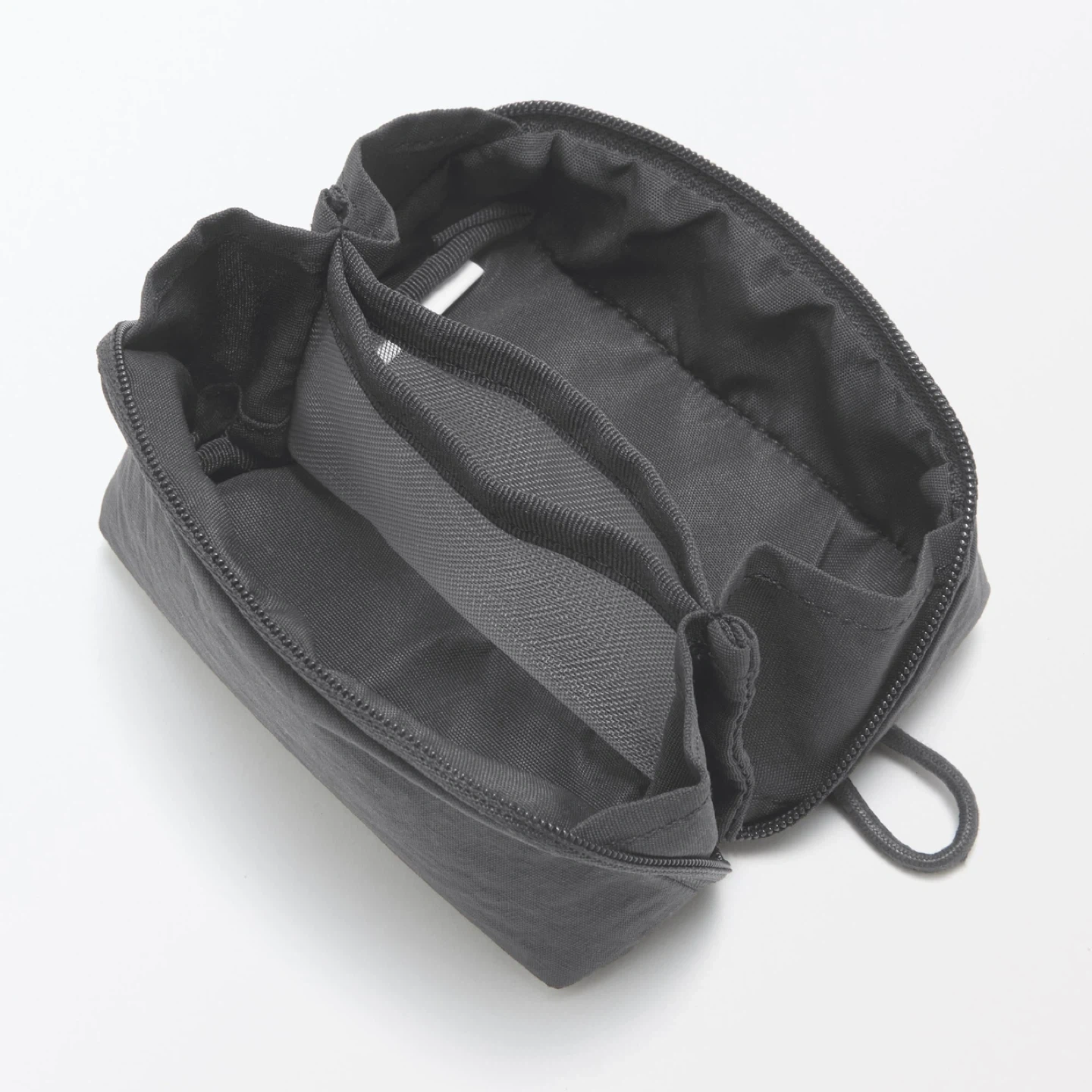 2 Pieces_Muji Waterproof Wrinkle Nylon Wide-Open Pouch_Black_NWT