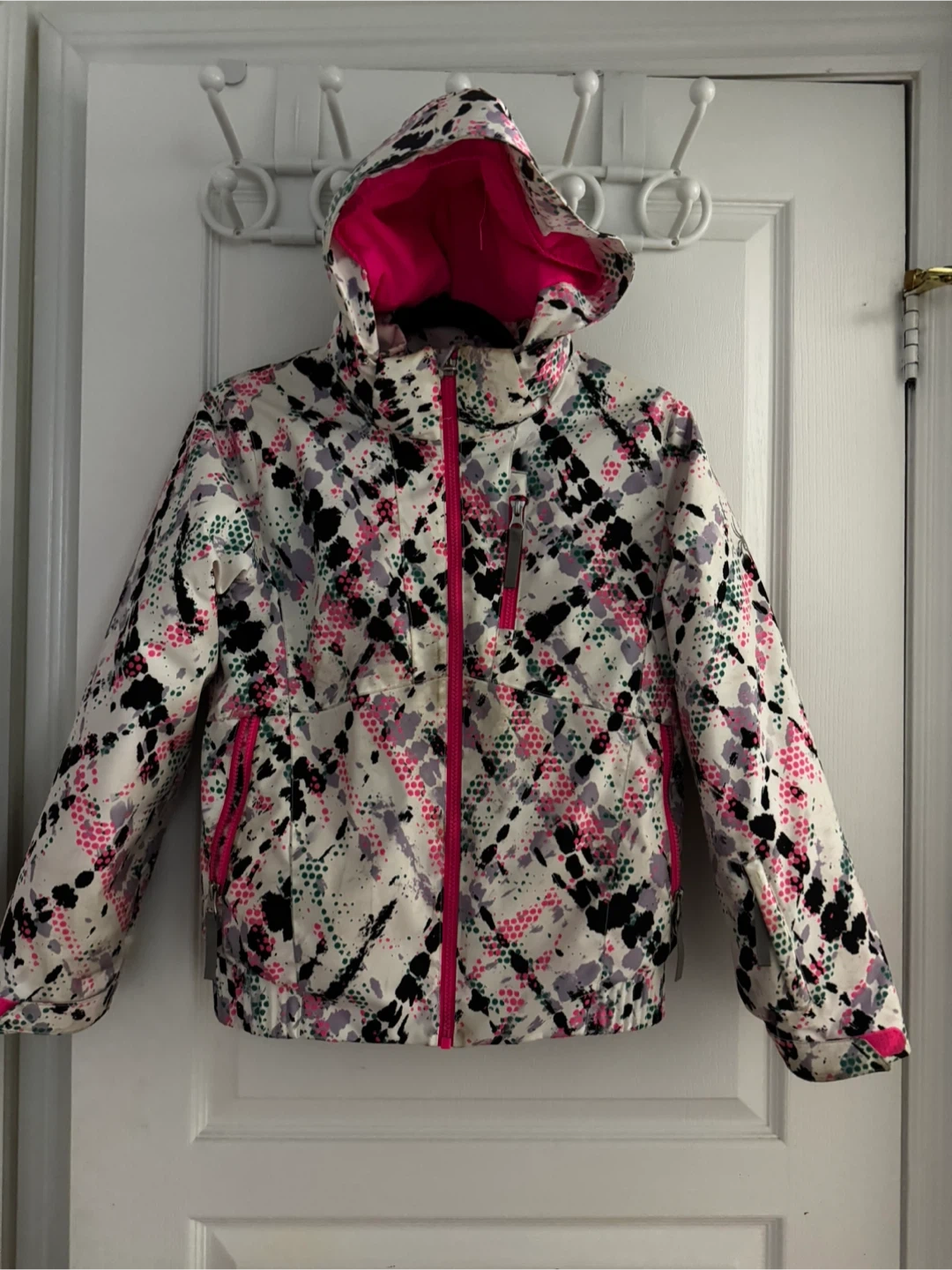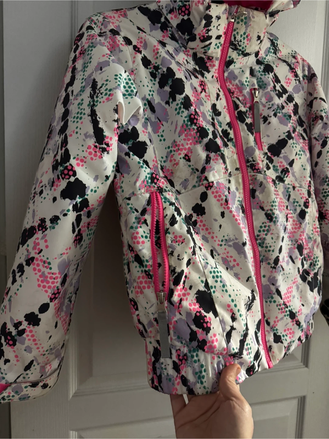 This is a vibrant, multicoloured ski jacket from Spyder. The jacket is sized 14 and made in Myanmar. It's perfect for hitting the slopes