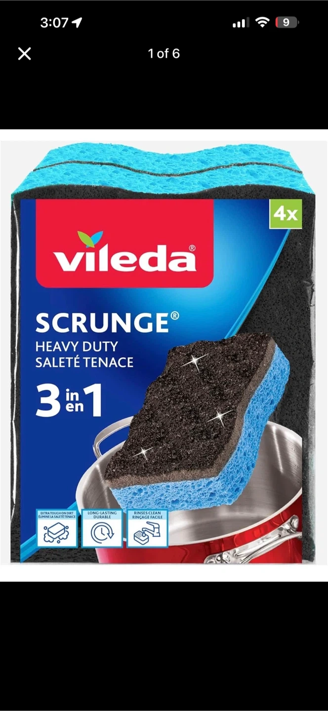 Vileda Scrunge Heavy Duty sponges are tough on messes and long-lasting. They're designed to be non-scratch and rinse clean easily. These 3-in-1 sponges are great for tackling stubborn grime on various surfaces.