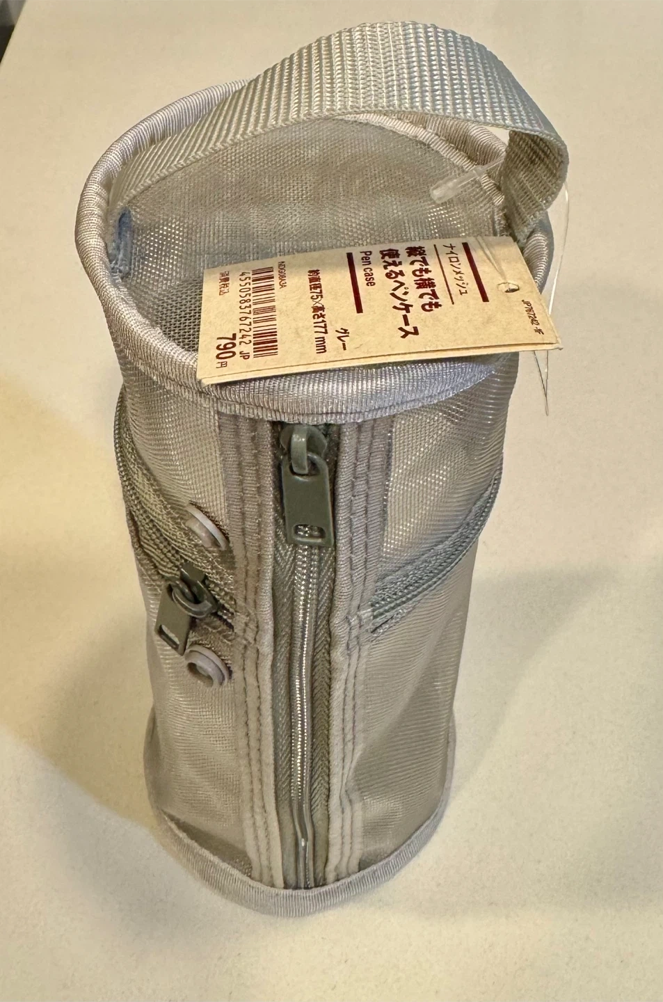 Muji Nylon Mesh Vertical/Horizontal Pen/Cosmetics Case_Gray_NWT
