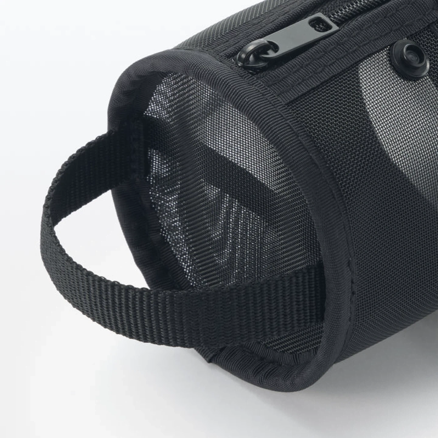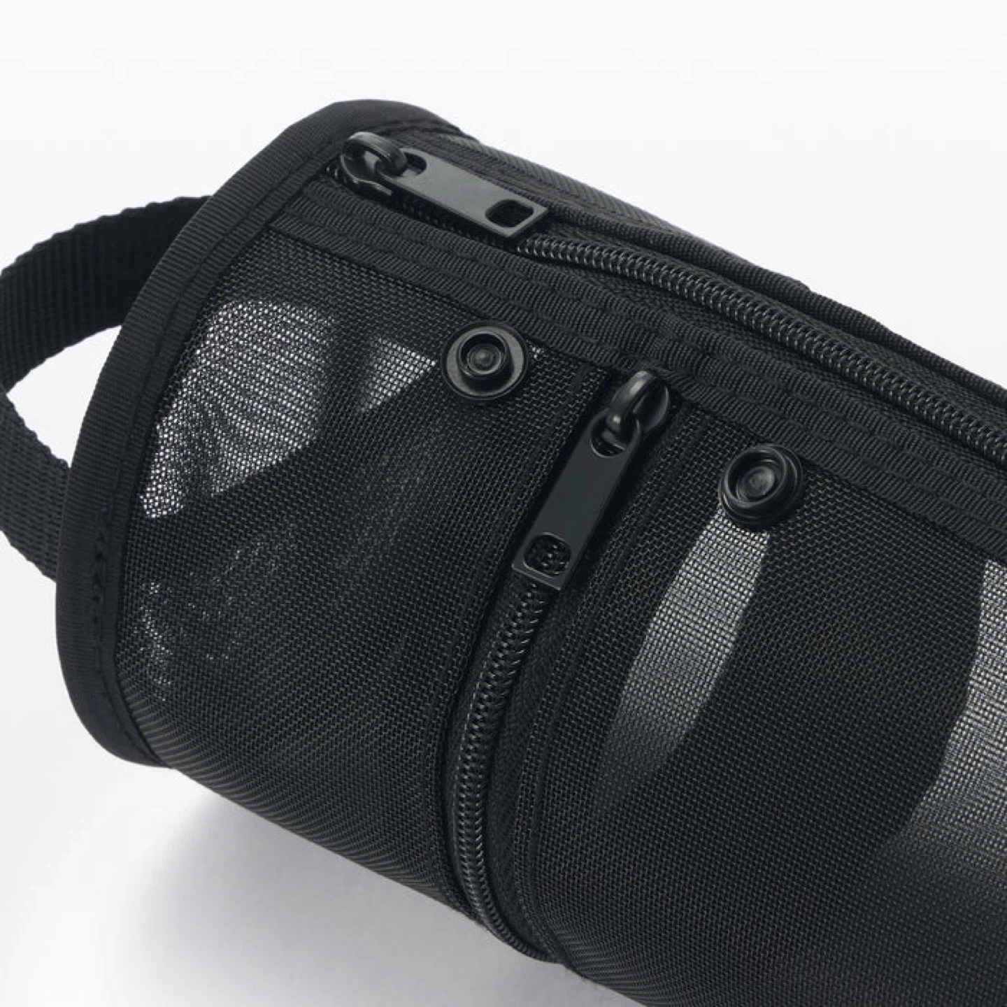 A pen case made of light and durable nylon mesh fabric, structured in a way that can open both horizontally or vertically for your convenience.