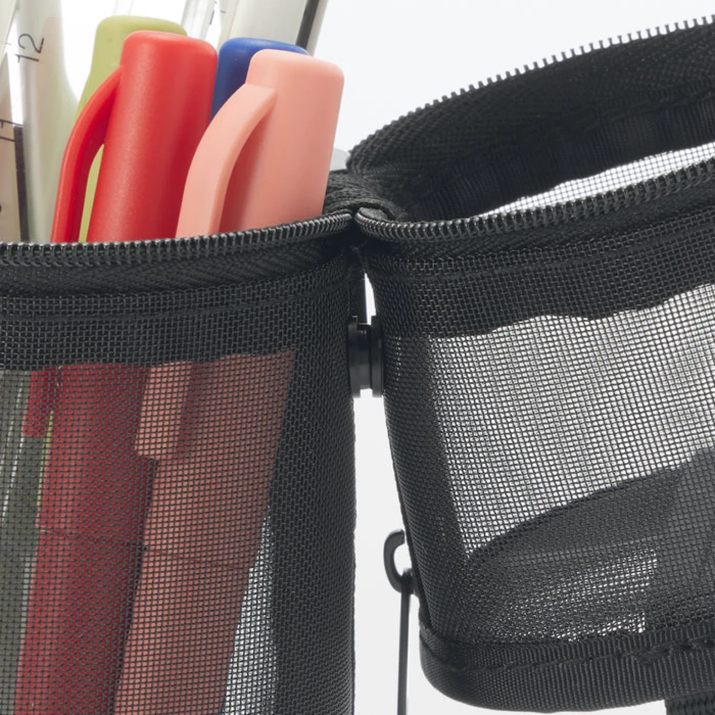 Sleek black mesh design. Durable and stylish. Perfect for organizing pens and pencils.