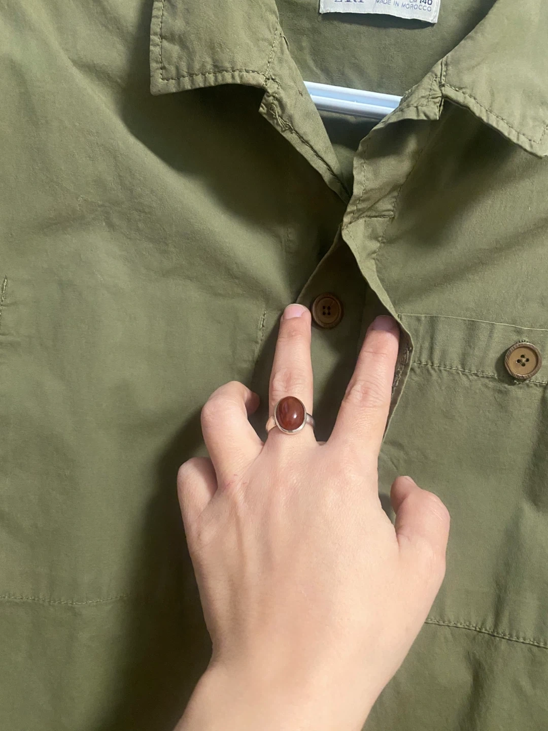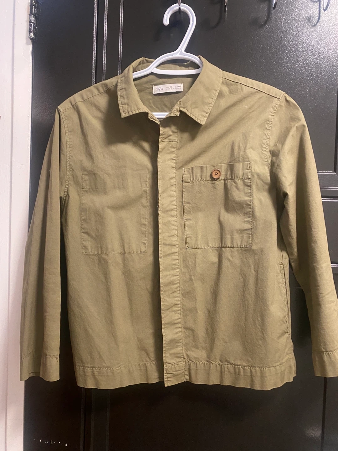 ZARA olive green shirt jacket with two front chest pockets and 2 sides pockets and button closures. Made in Morocco. Size 10 / CM 140.