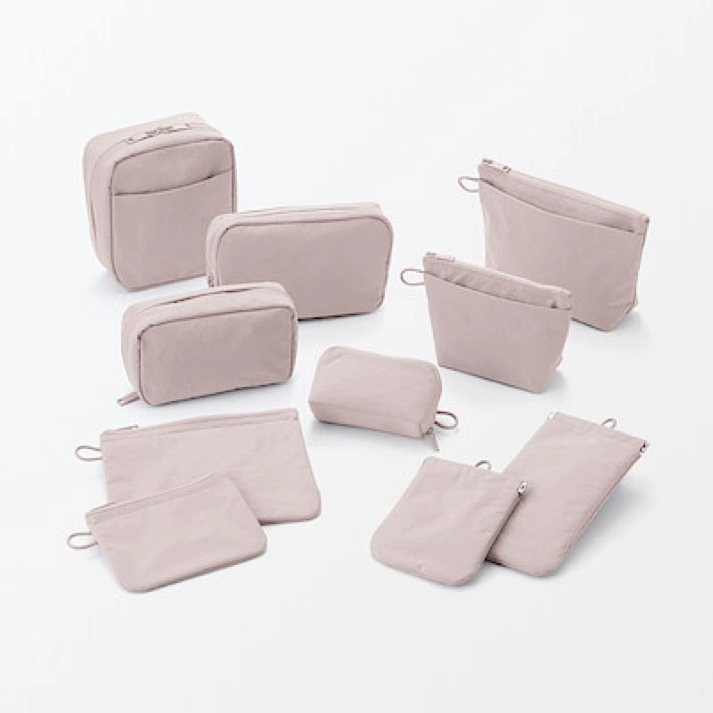 Muji Wrinkled Nylon Self-Closing Flat Pouch_Light Pink_NWT